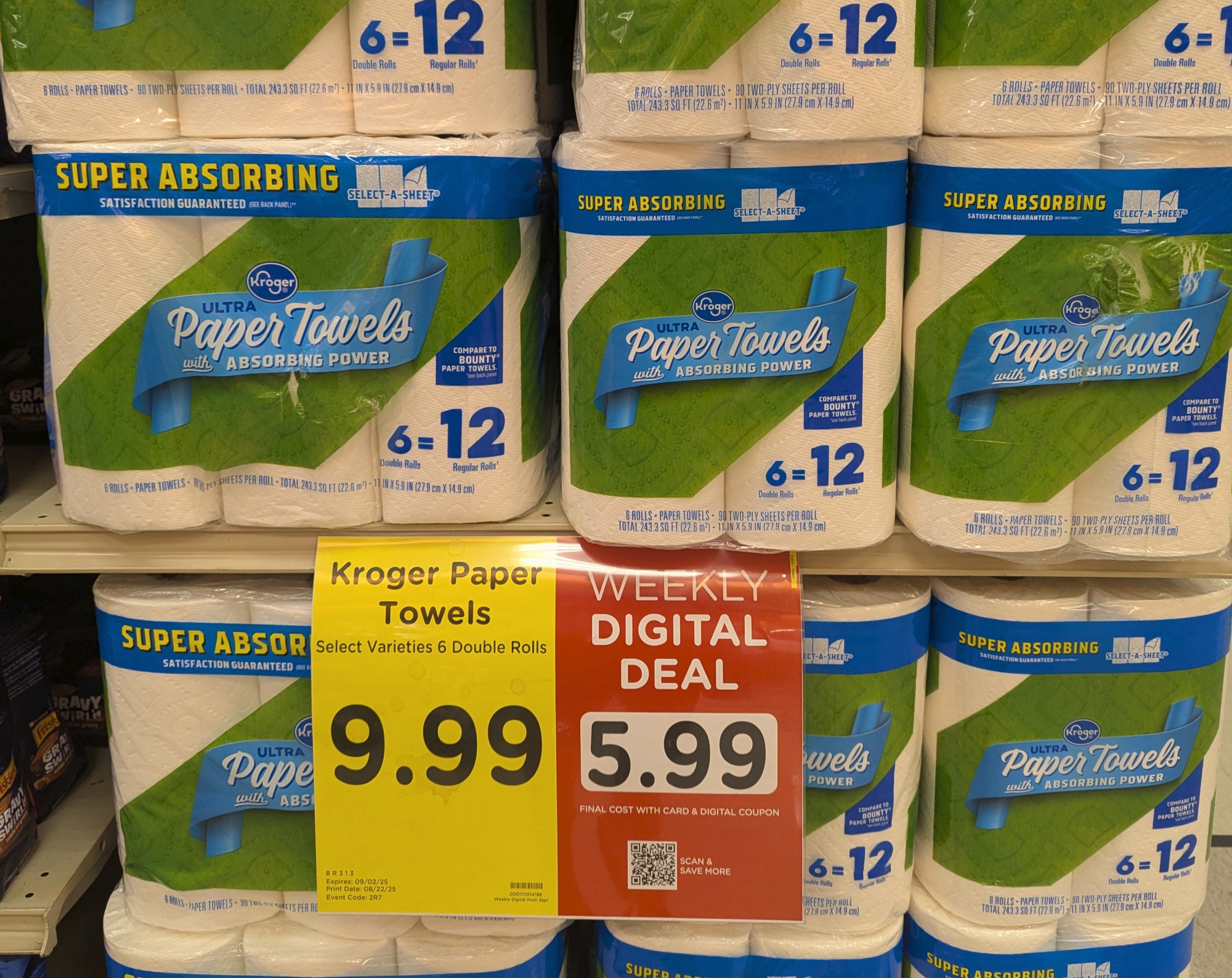 $4/1 Kroger Ultra Paper Towels, 6 Double Roll, Kroger Super Saver Digital Coupon (use up to 5 times in a single transaction)