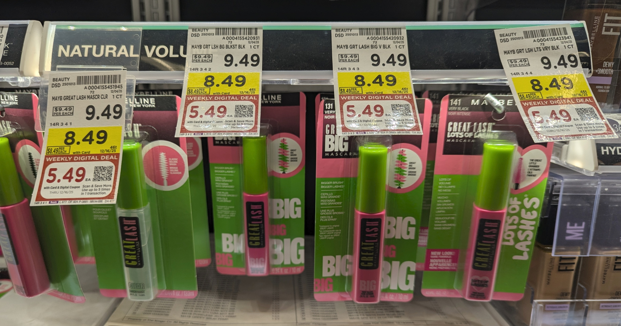 Clip your digital coupon for a nice deal on Maybelline Great Lash Mascara. Get the mascara for just $5.49 after discounts at Kroger.