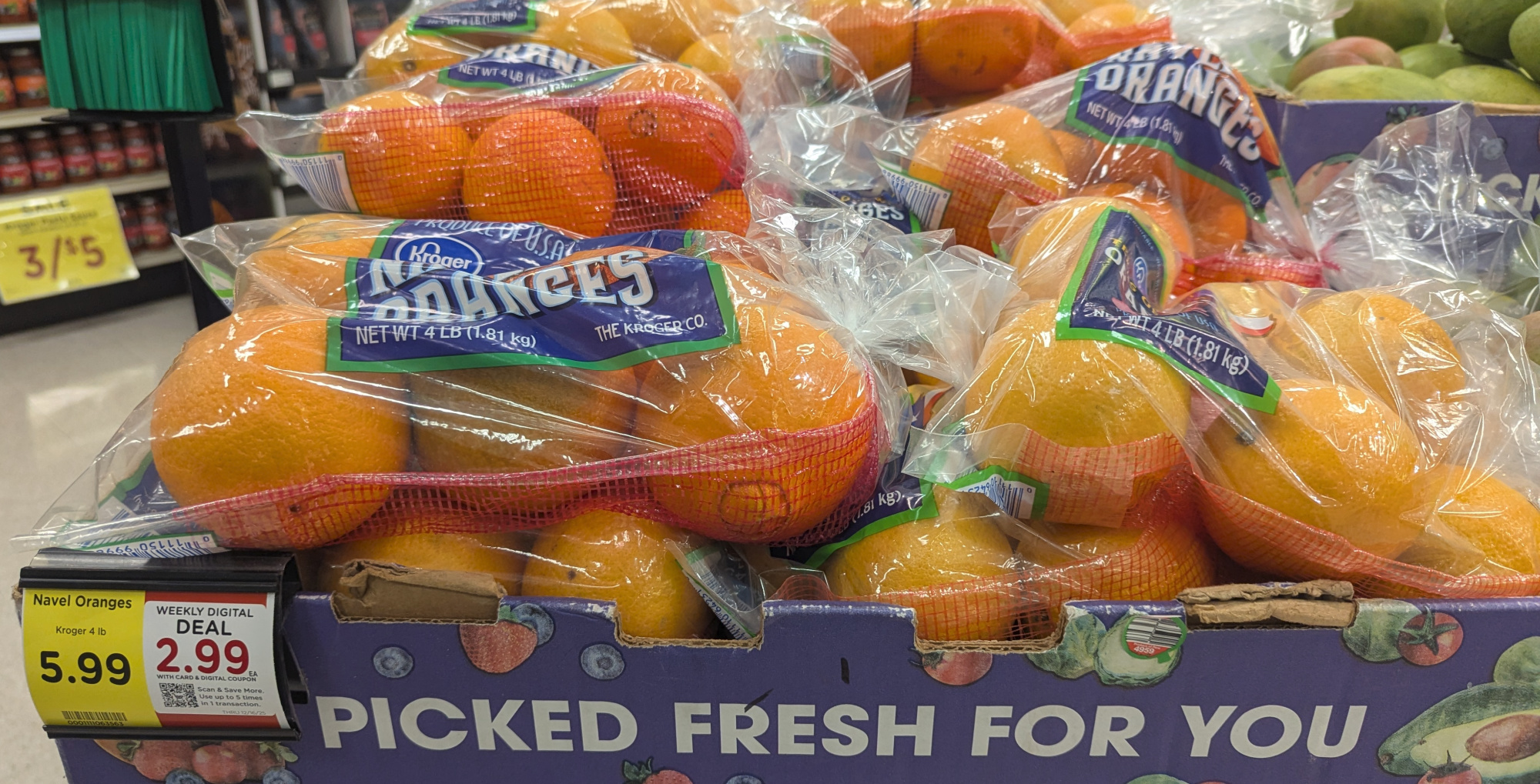 Kroger Navel Oranges, 4-lb bag, $5.99