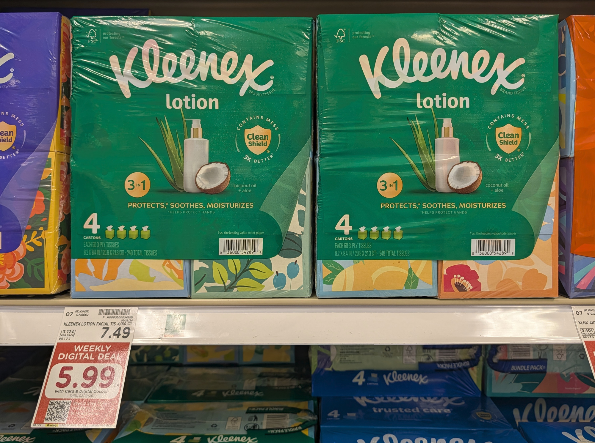 Head over to Kroger for a deal on Kleenex. Combine the digital coupon to pick up the 4-packs of tissues for just $5.99 the next time you shop. Get up to five packs at a nice discount.