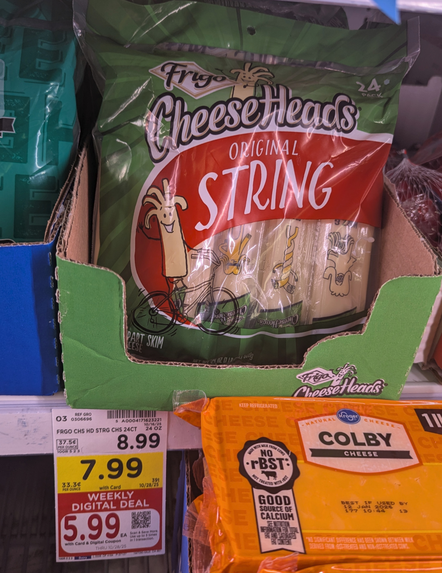 –$2/1 Frigo String Cheese, 24 ct, Kroger Super Saver Digital Coupon (use up to 5 times in a single transaction)