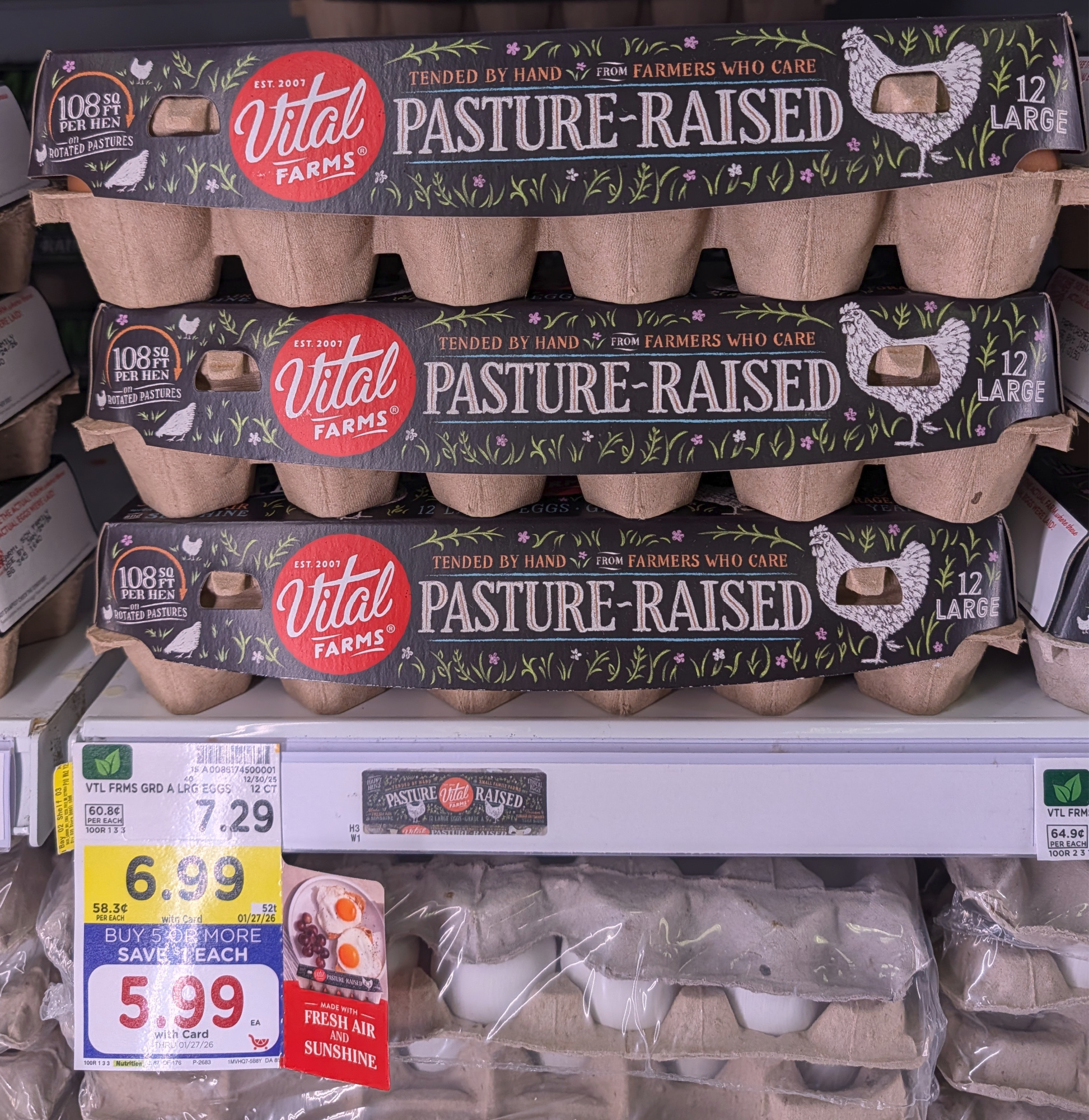 Head over to Kroger for a deal on Vital Farms Eggs. You can grab the carton of eggs as low as $5.49 after sale and cash back!