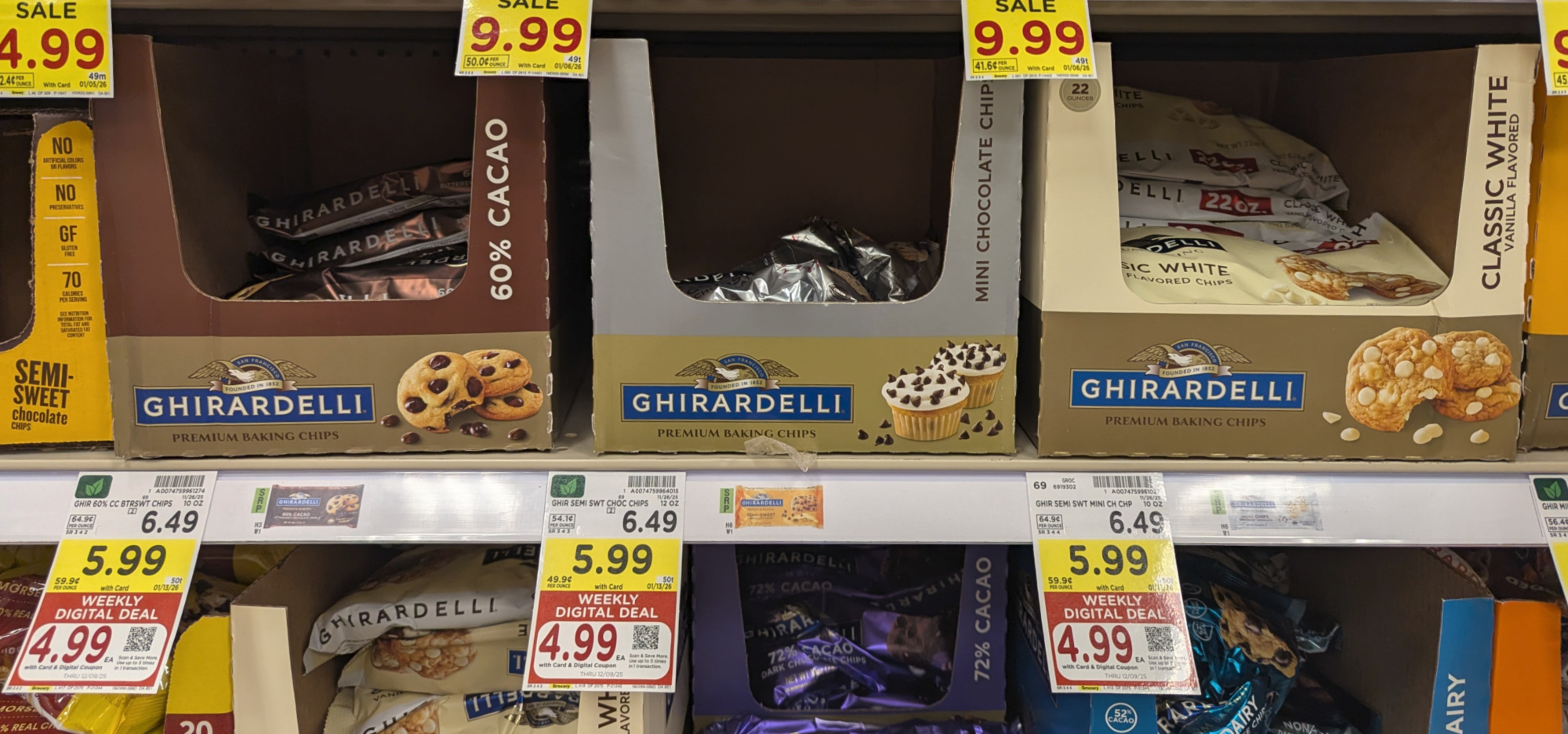 Head over to Kroger for a deal on Ghirardelli Baking Chips. Use the sale and coupon to pay just $4.99 per bag.