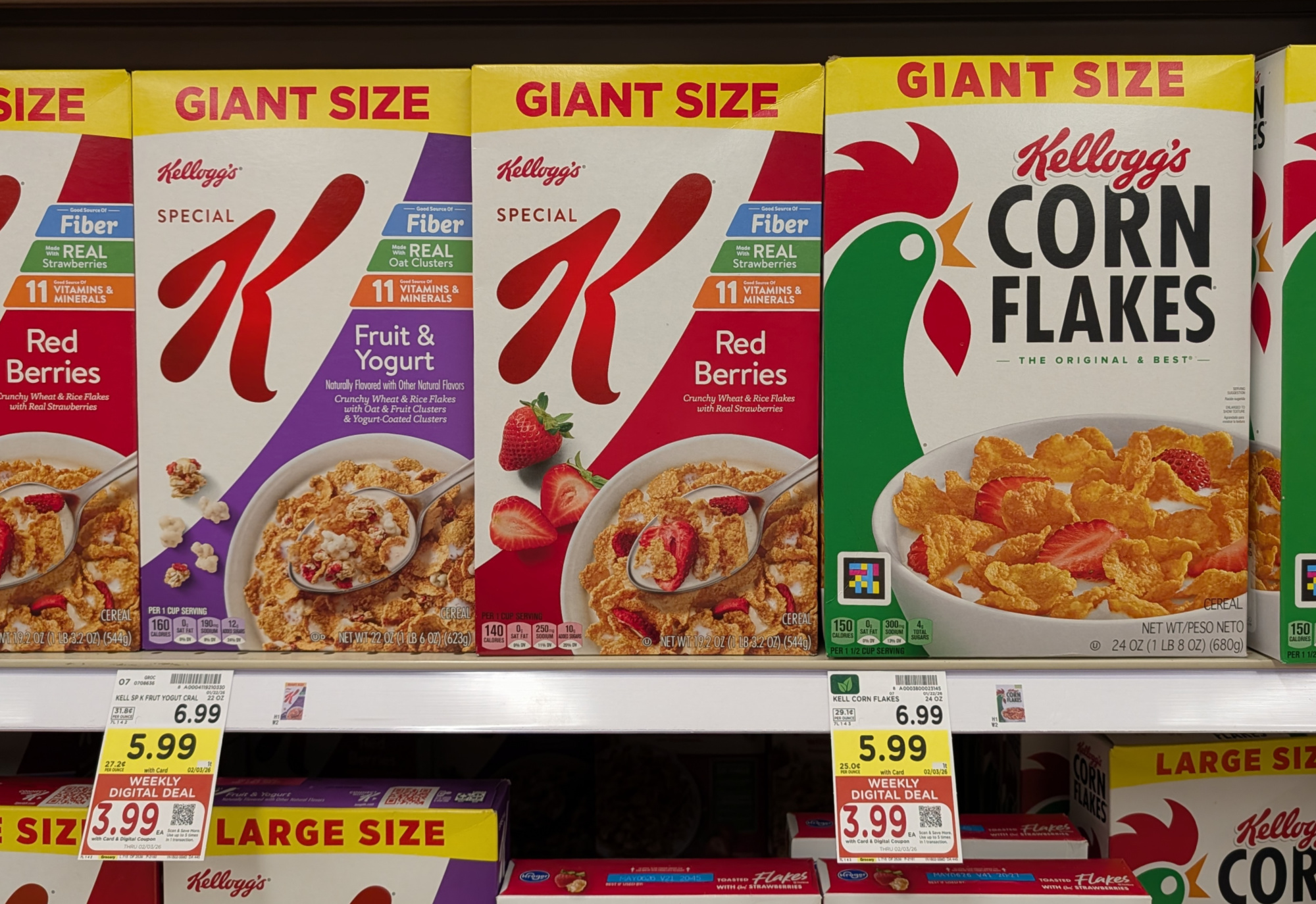 –$2/1 Kellogg’s Giant Size Cereal, 19.2 to 29.5 oz, Kroger Super Saver Digital Coupon (use up to 5 times in a single transaction)
