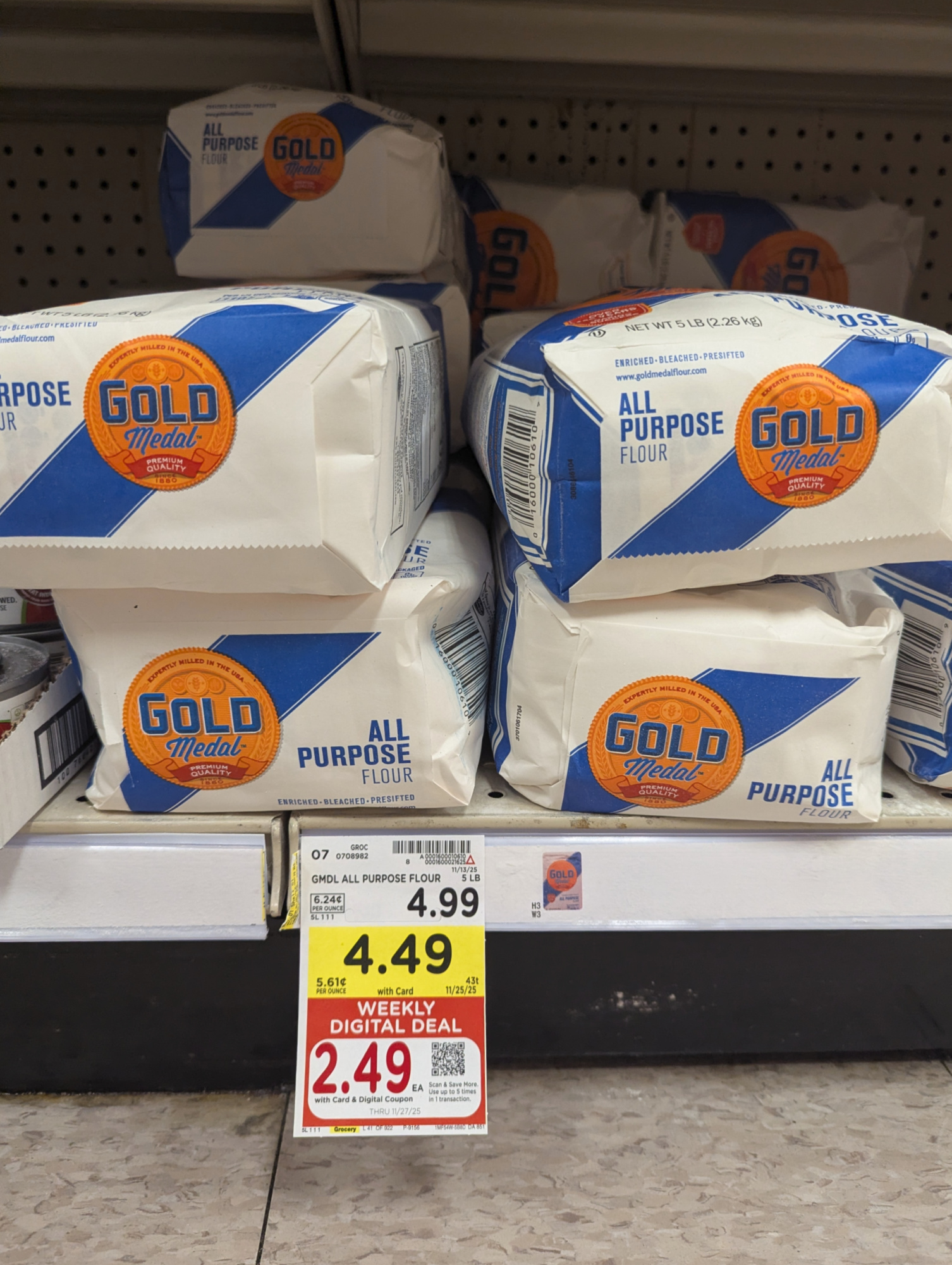 Just in time for holiday baking… look for a nice deal on Gold Medal Flour at Kroger. Use the sale and digital coupon to grab the bags for just $2.49 each. Stock up while you can.