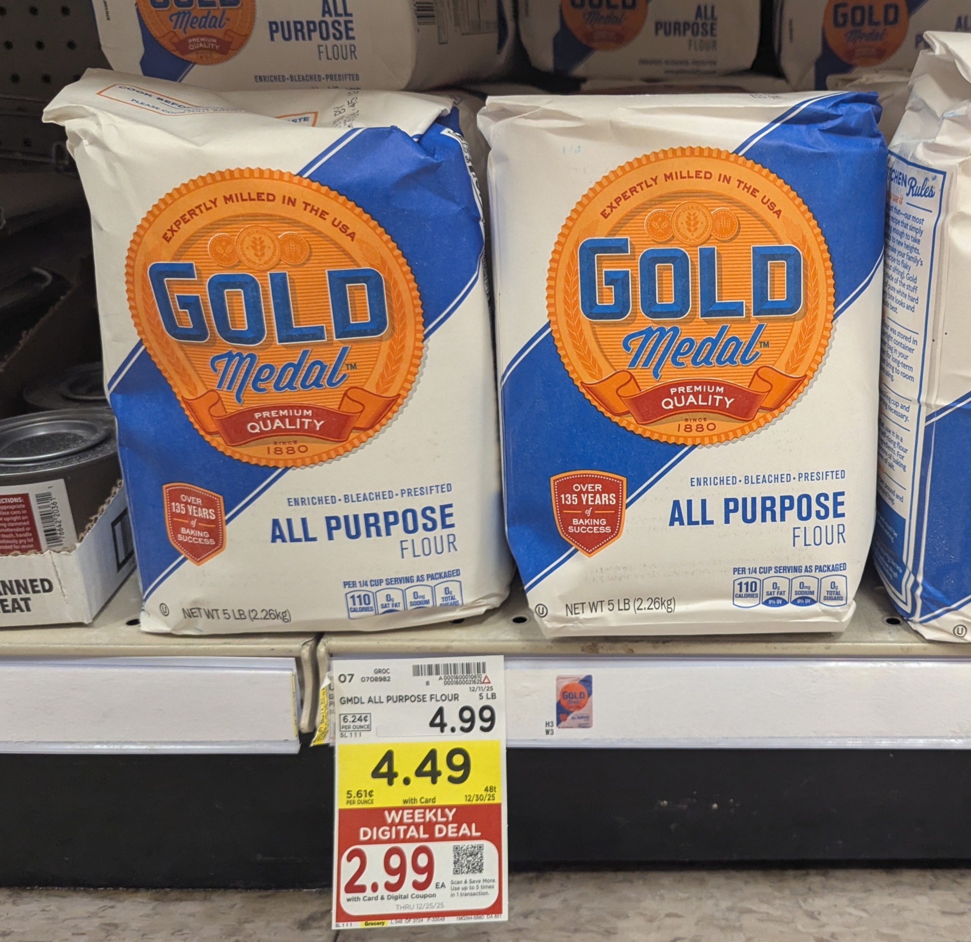 Just in time for holiday baking… look for a nice deal on Gold Medal Flour at Kroger. Use the digital coupon to grab the bags for just $2.99 each. Stock up while you can.