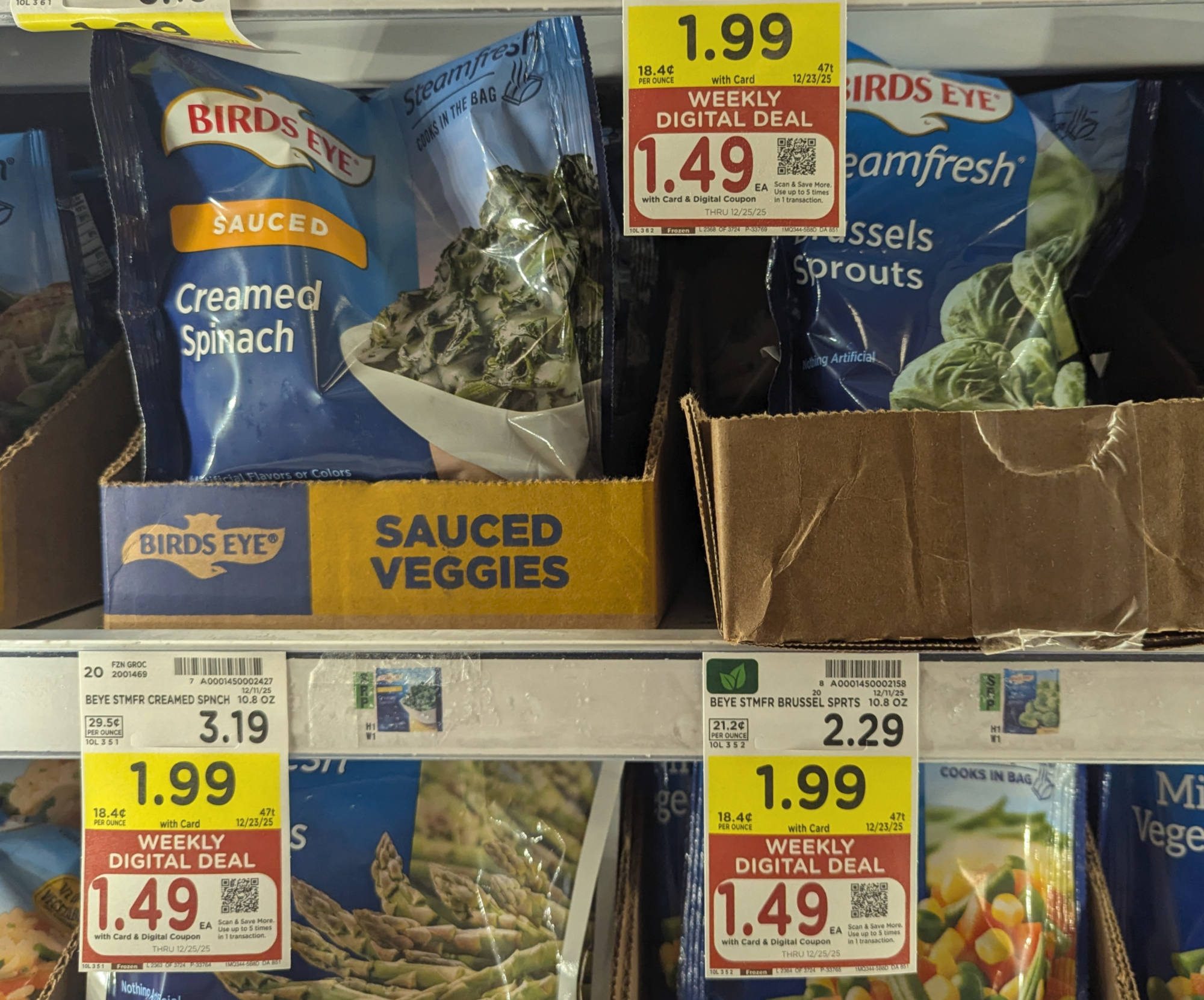 Load the digital coupon and grab up to FIVE bags of Birds Eye Frozen Vegetables for just $1.49 at Kroger. Mix and match to get your favorites at a super discount.
