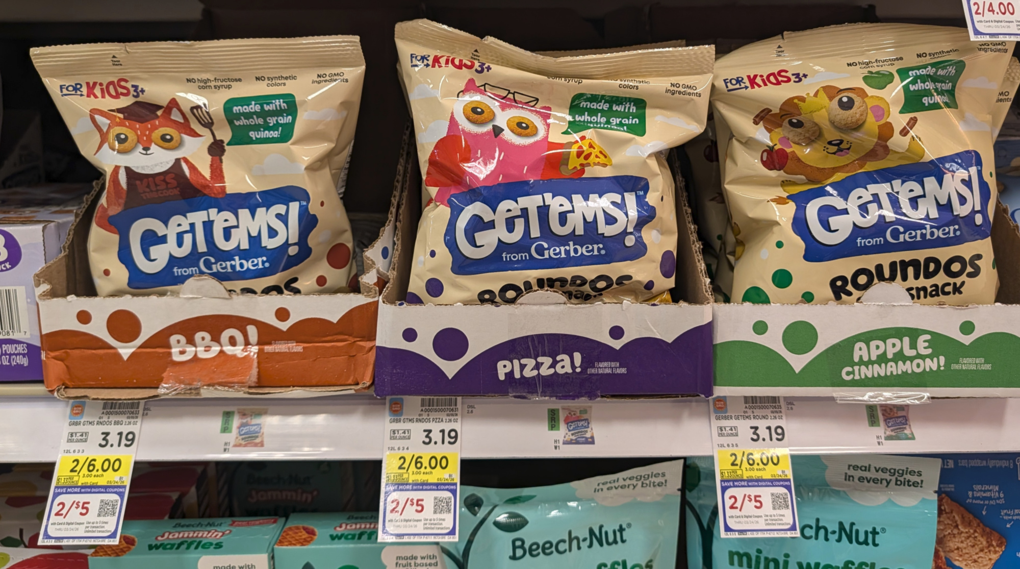 –$1/2 Gerber Get’ems!, 2.6 to 5.1 oz, Kroger Super Saver Digital Coupon (use up to 5 times in a single transaction)
