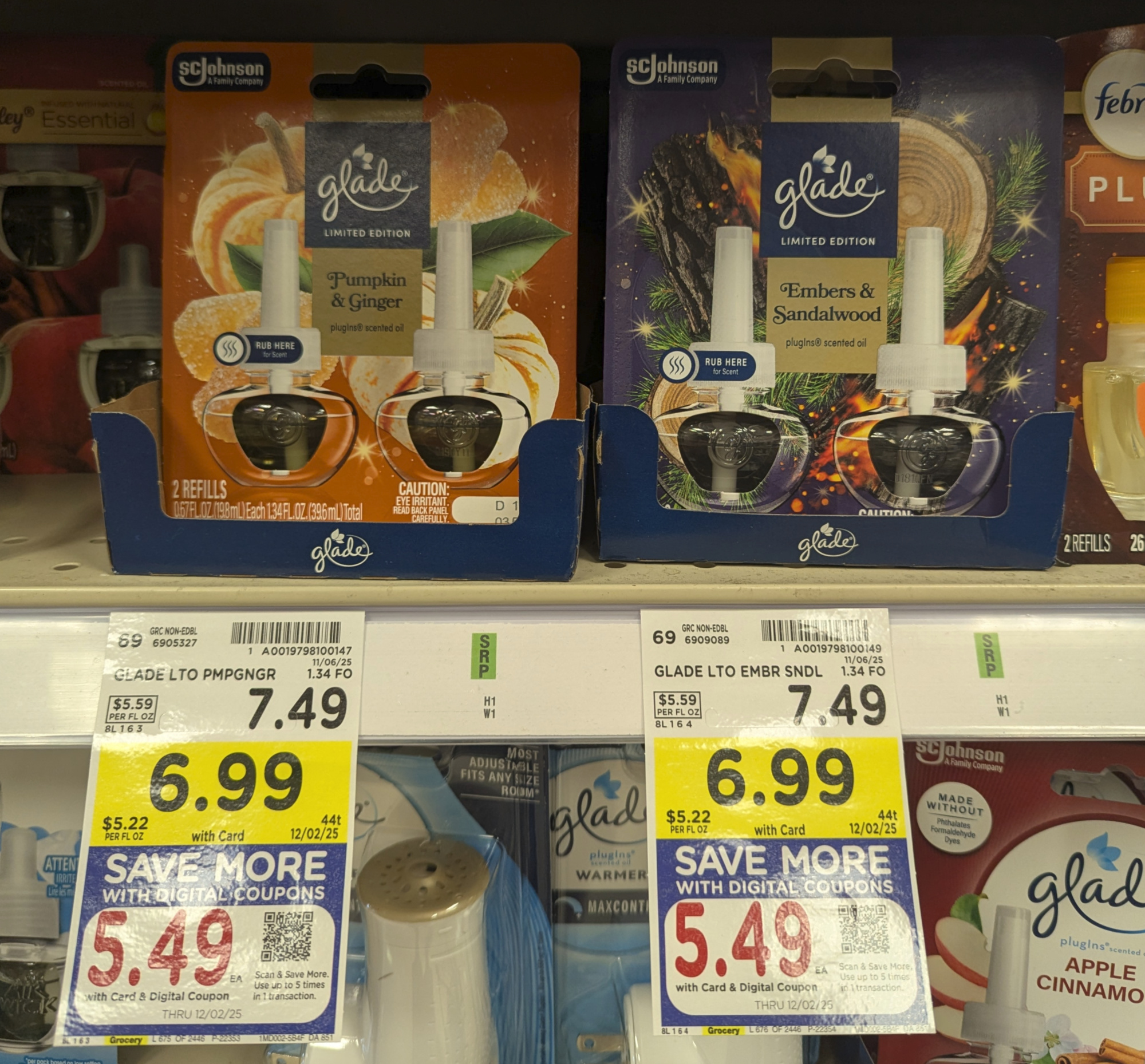 Grab a nice deal on Glade PlugIns Scented Oil Refills at Kroger. Combine the coupon and sale to pay as little as $5.49 per pack…that’s only $2.75 per refill! Great time to grab your favorite scents!
