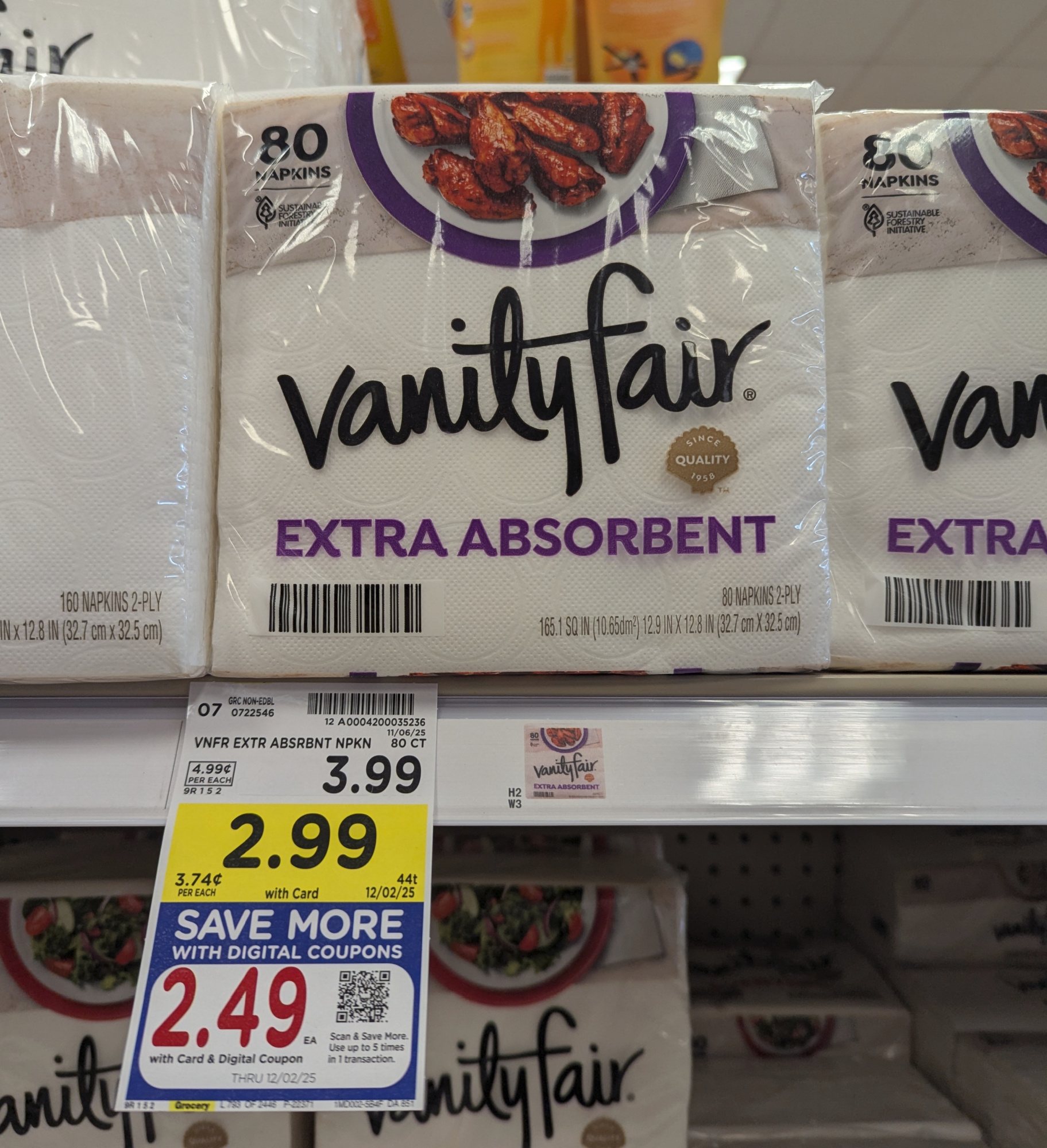 –$0.50/1 Vanity Fair Napkins, 80 ct, Kroger Super Saver Digital Coupon (use up to 5 times in a single transaction)
