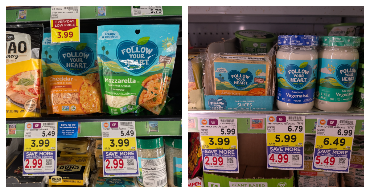 –$1/1 Follow Your Heart Cheese & Vegenaise (4-14 oz). Kroger Super Saver Digital Coupon (use up to 5 times in a single transaction)