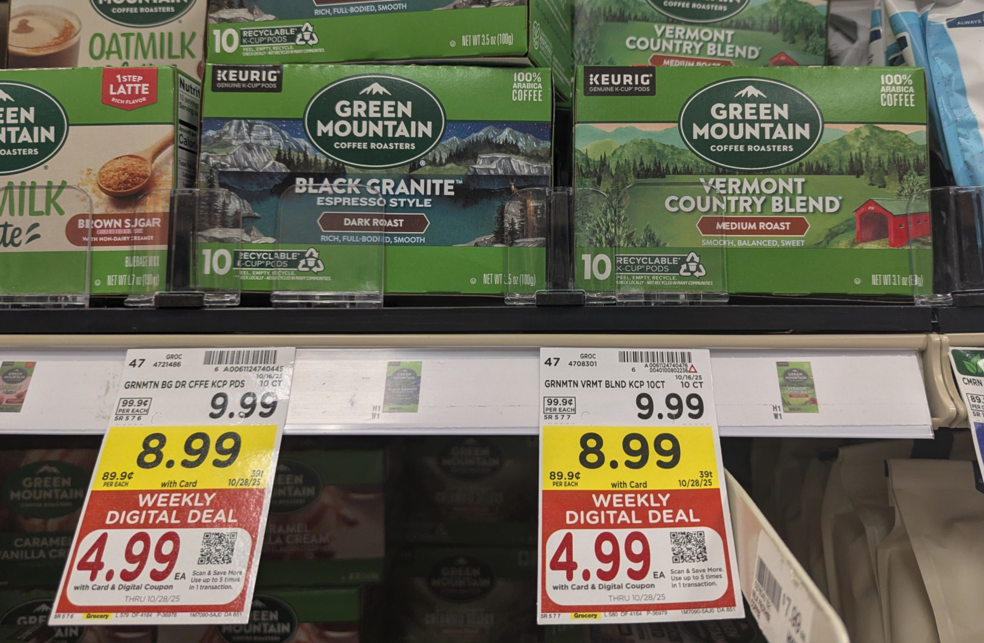 You can get a super discount on Green Mountain or McCafe K-Cups at Kroger. With the combination of the current sale and digital coupon, you’ll get boxes for only $4.99 each. It’s a perfect opportunity to stock up on your favorite coffee for less.