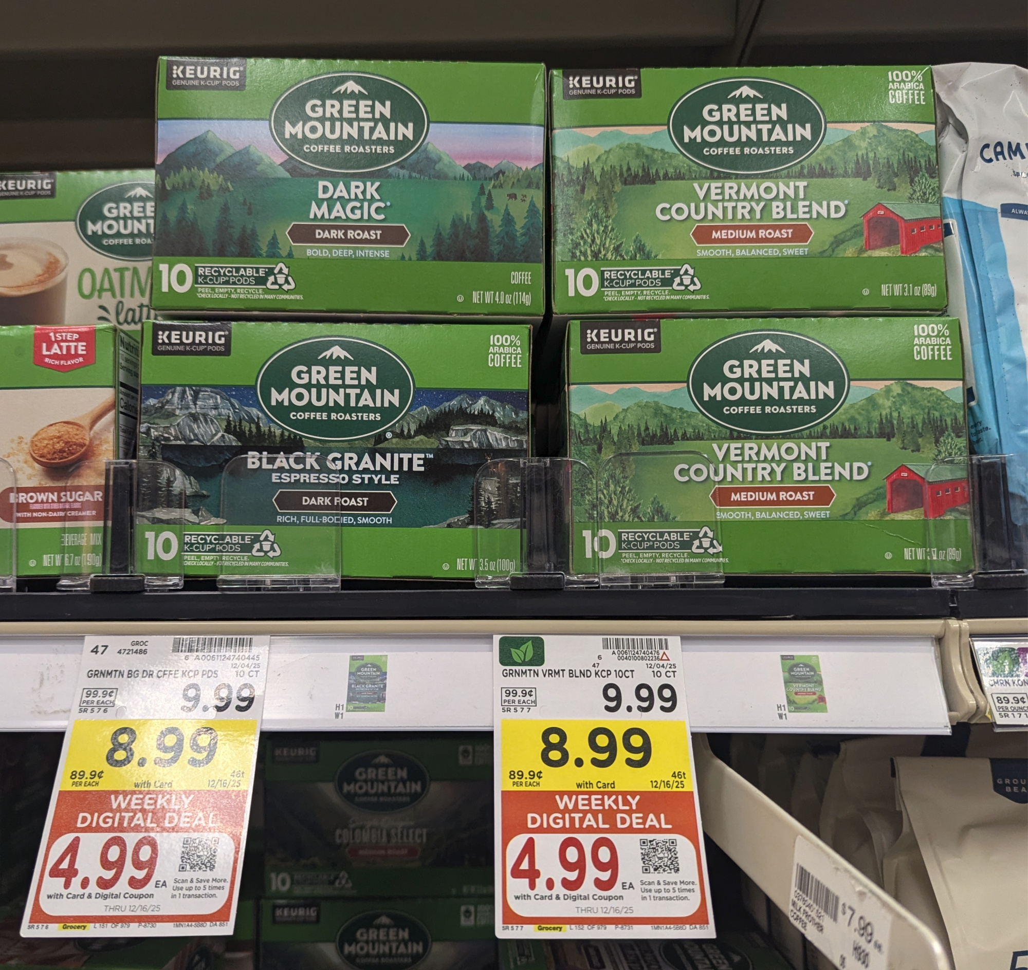 You can get a super discount on Green Mountain or McCafe K-Cups at Kroger. With the combination of the current sale and digital coupon, you’ll get boxes for only $4.99 each.