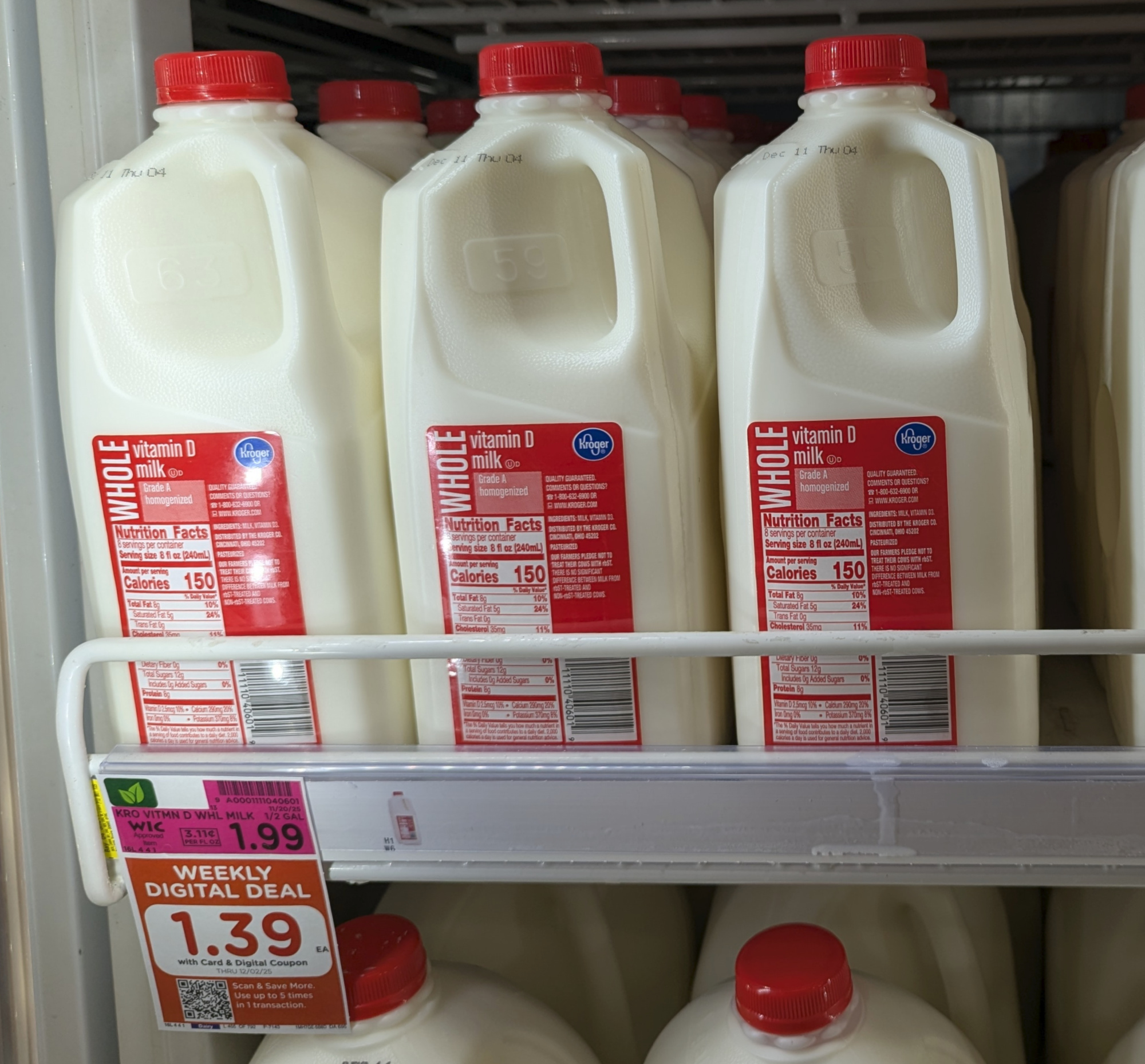 $0.60/1 Kroger Milk, Half Gallon, (Excludes Chocolate), Kroger Super Saver Digital Coupon (use up to 5 times in a single transaction)