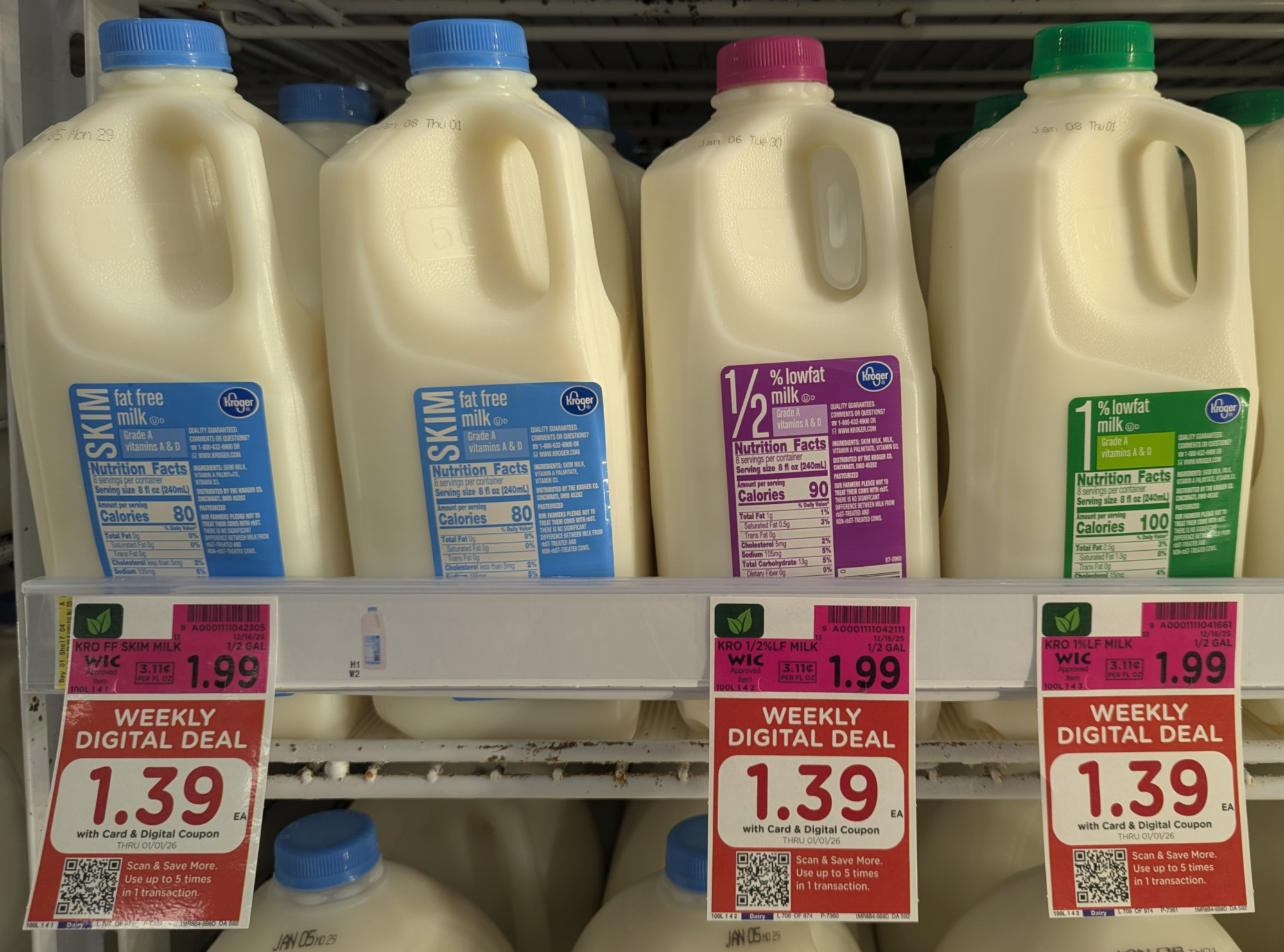 Pick up the half gallons of Kroger Milk for just $1.39 with the digital coupon. Get up to FIVE at that price the next time you shop!