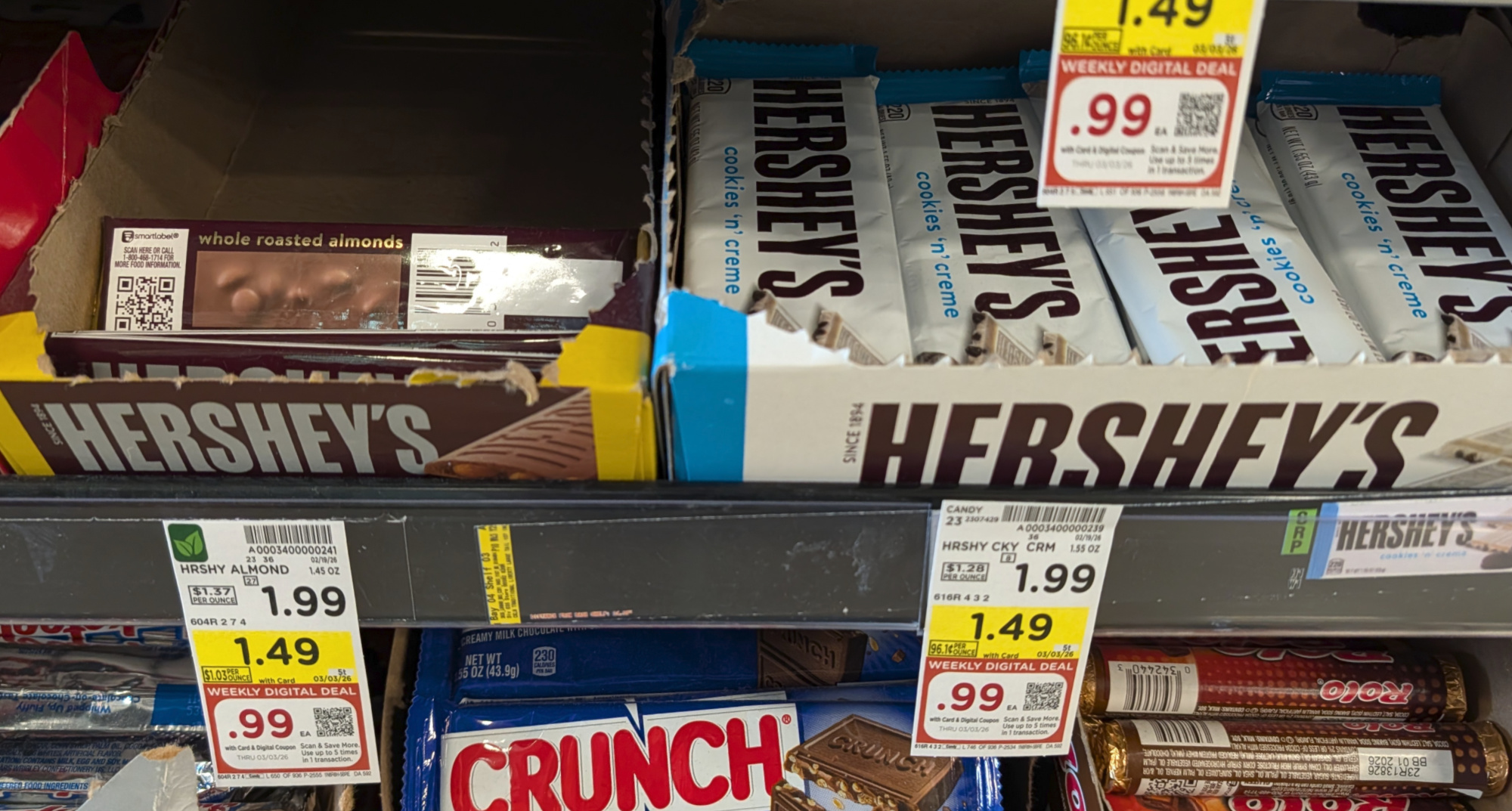 Hershey’s Candy, 1.4 to 1.85 oz, $1.49 (reg $1.99) – through 3/3