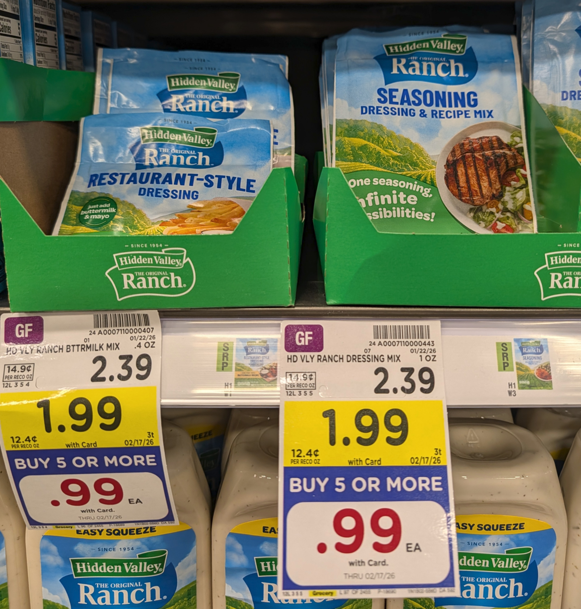 Hidden Valley Ranch Dressing, or Dip Mix, 0.4 to 1.1 oz, $0.99 (reg $2.39) – through 2/17