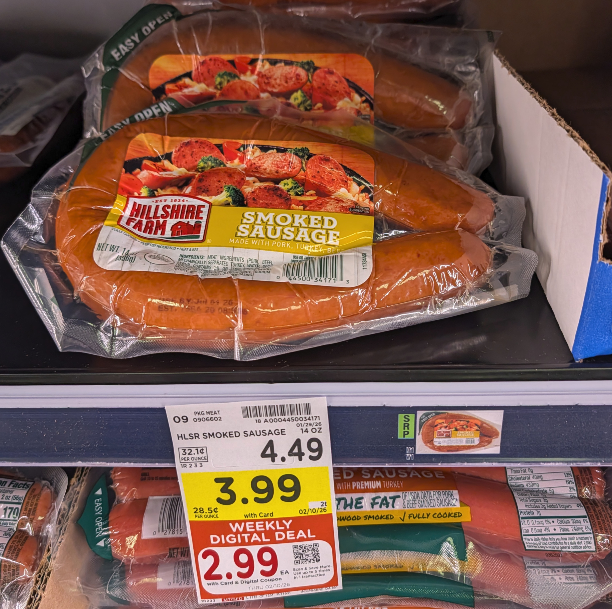 Hillshire Farm Smoked Sausage, 12 to 14 oz, $3.99 (reg $4.49) – through 2/10