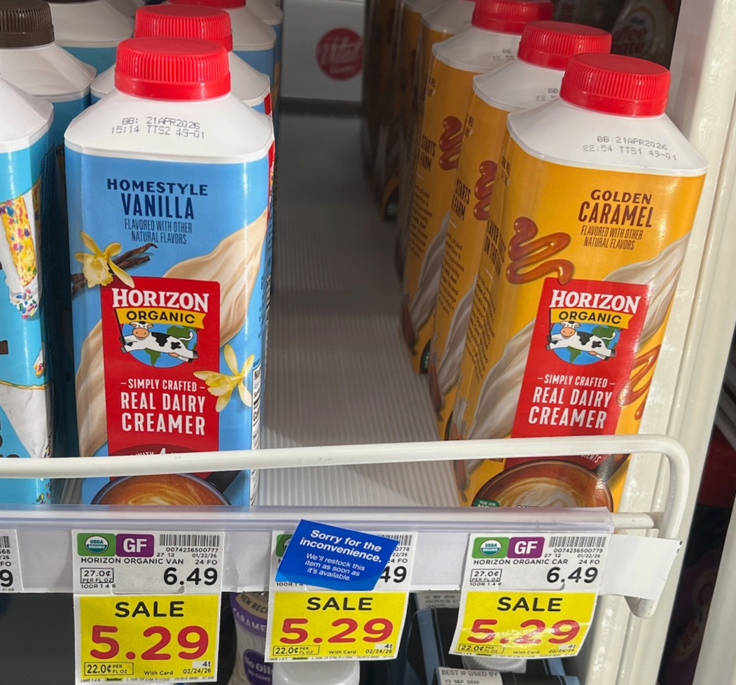 Right now you can grab the bottles of Horizon Organic Creamer for as little as $4.29 at Kroger. Take advantage of the discount and grab your deal while you can!