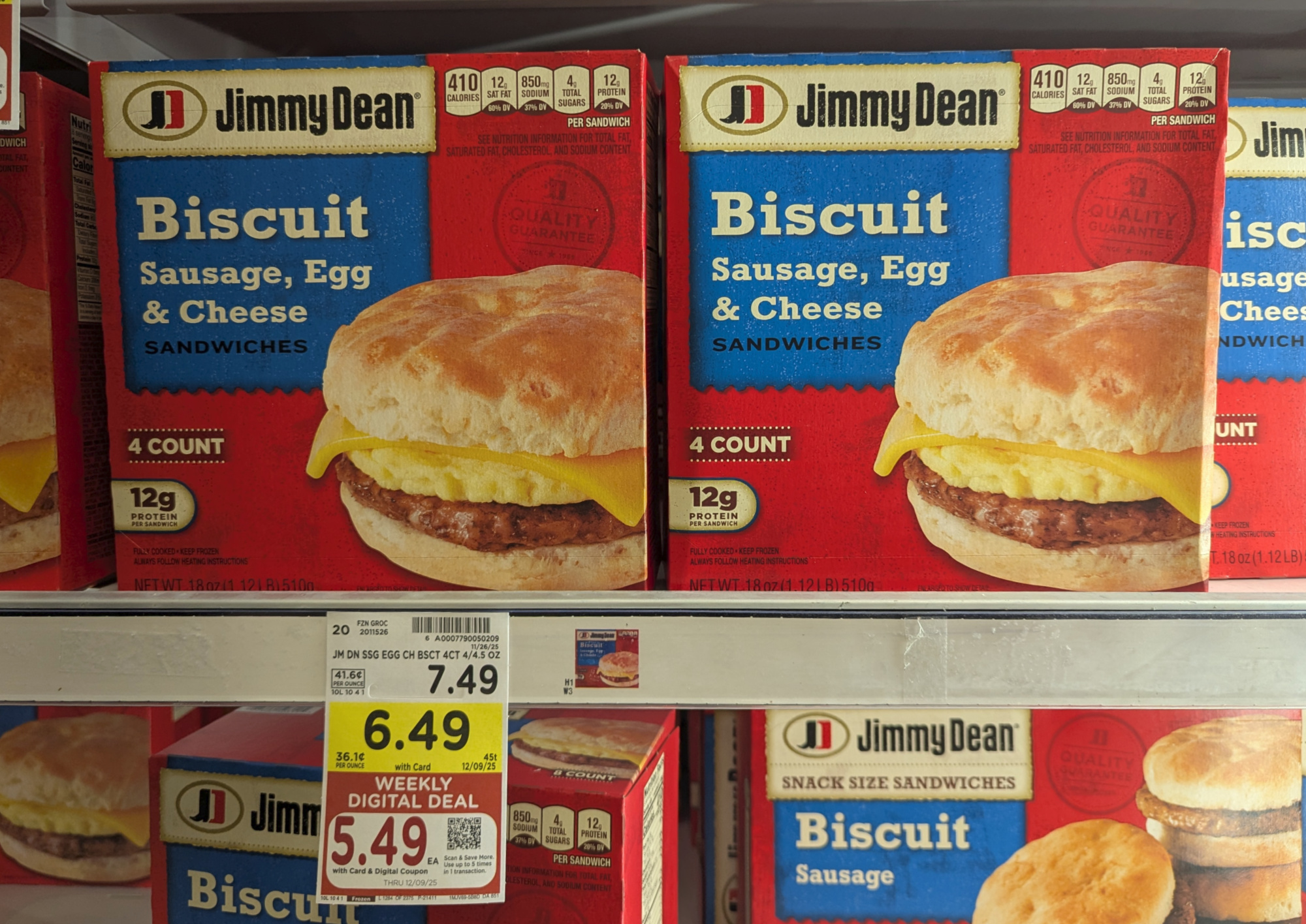 –$1/1 Jimmy Dean Frozen Breakfast Entree, 4 to 10 ct, Kroger Super Saver Digital Coupon (use up to 5 times in a single transaction)
