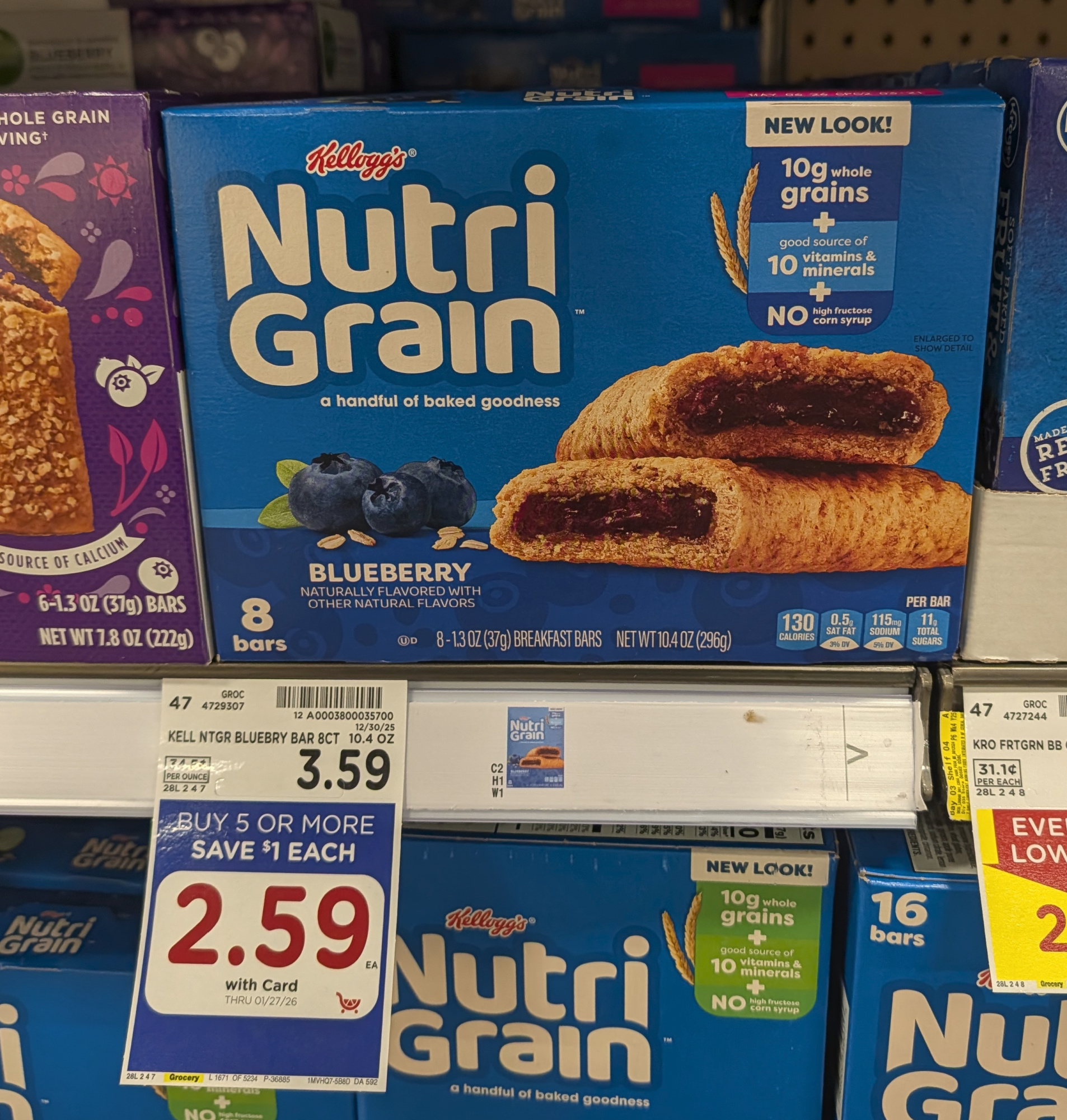 Kellogg’s Nutri Grain Bars, 8 ct, $2.59 (reg $3.59) – through 1/27