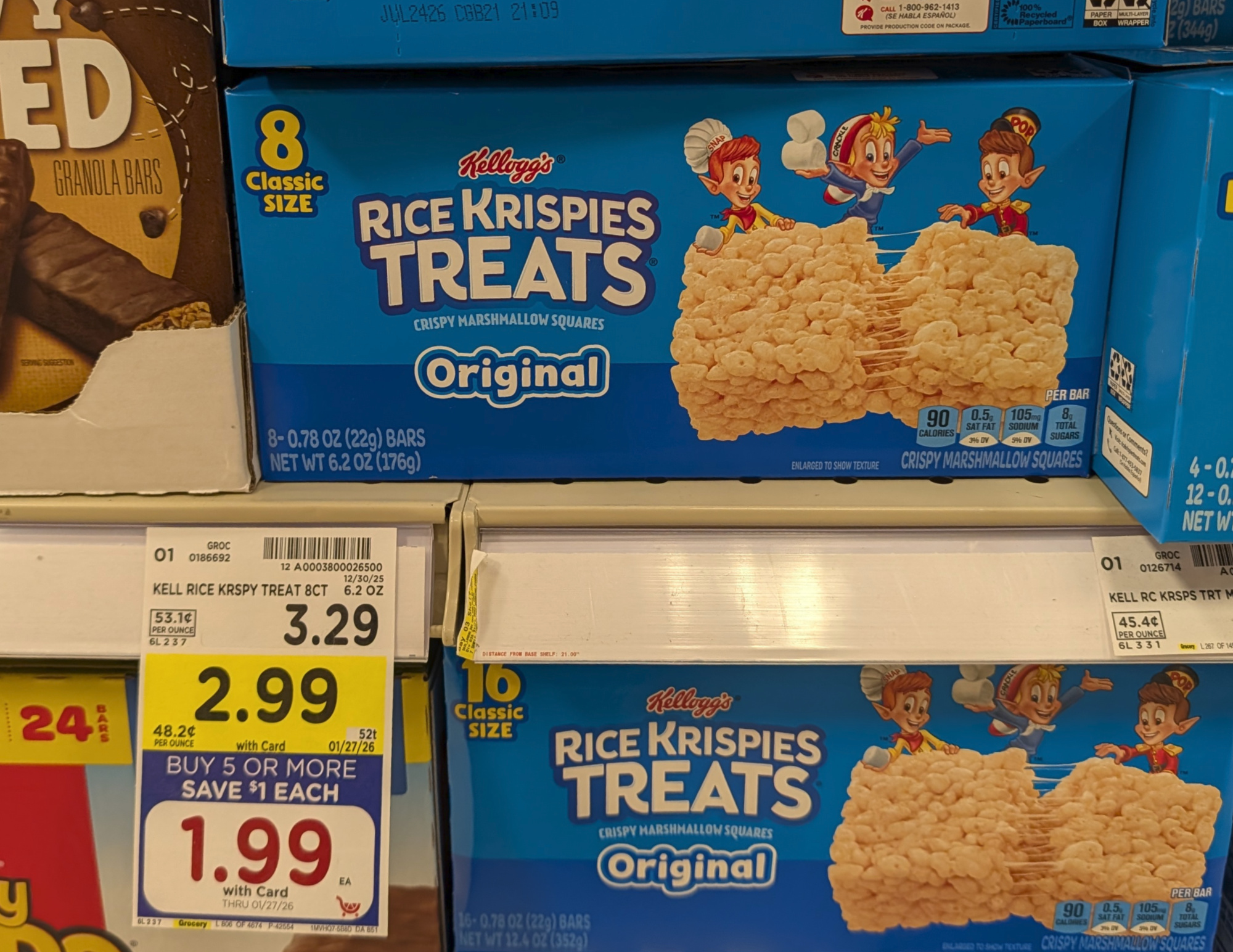 Kellogg’s Rice Krispies Treats, 8 ct, $1.99 (reg $3.29) – through 1/27