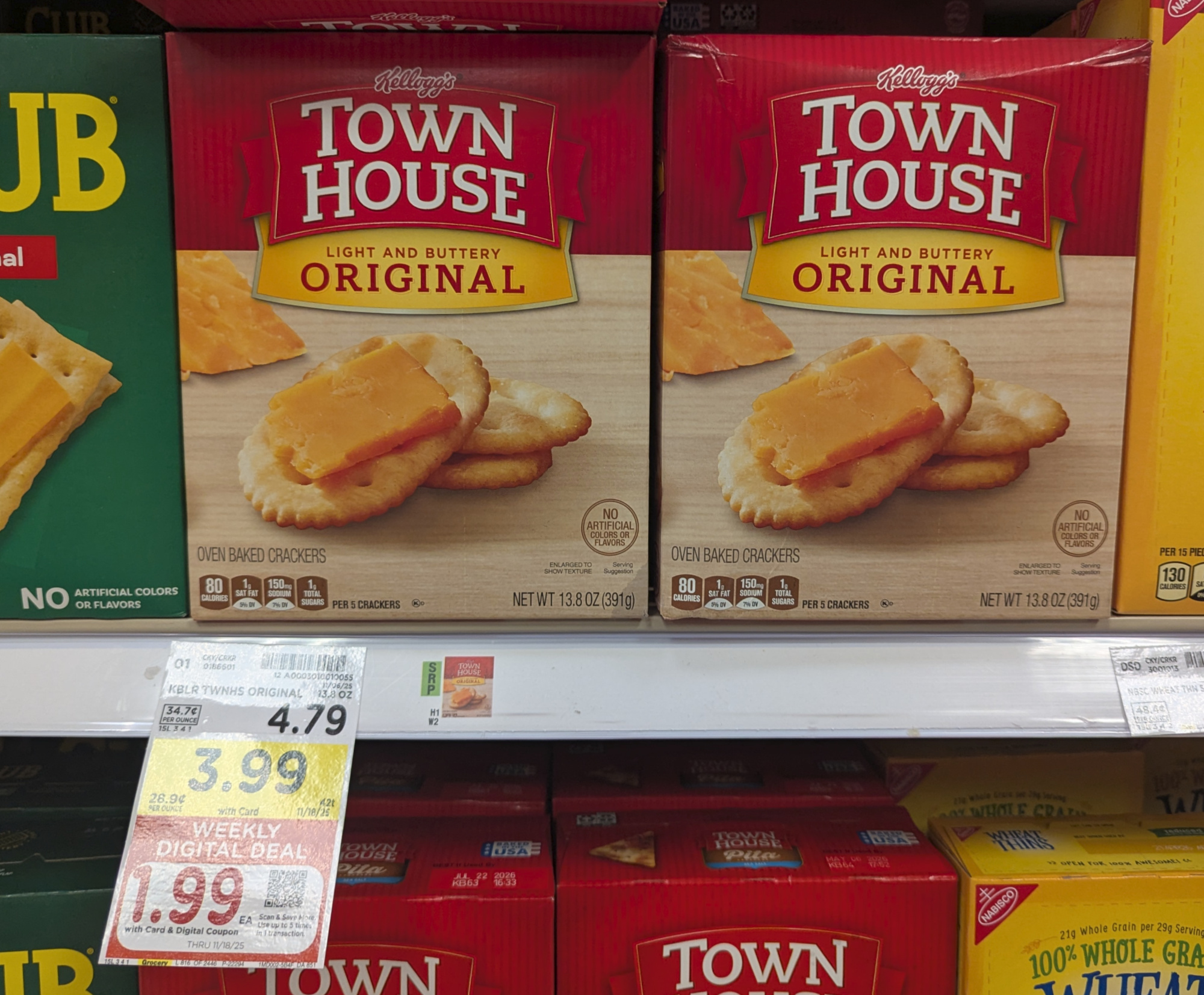 Kellogg’s Club Crackers, 11 to 13.7 oz, or Townhouse Crackers, 9.2 to 13.8 oz, $3.99 (reg $4.79) – through 11/18
