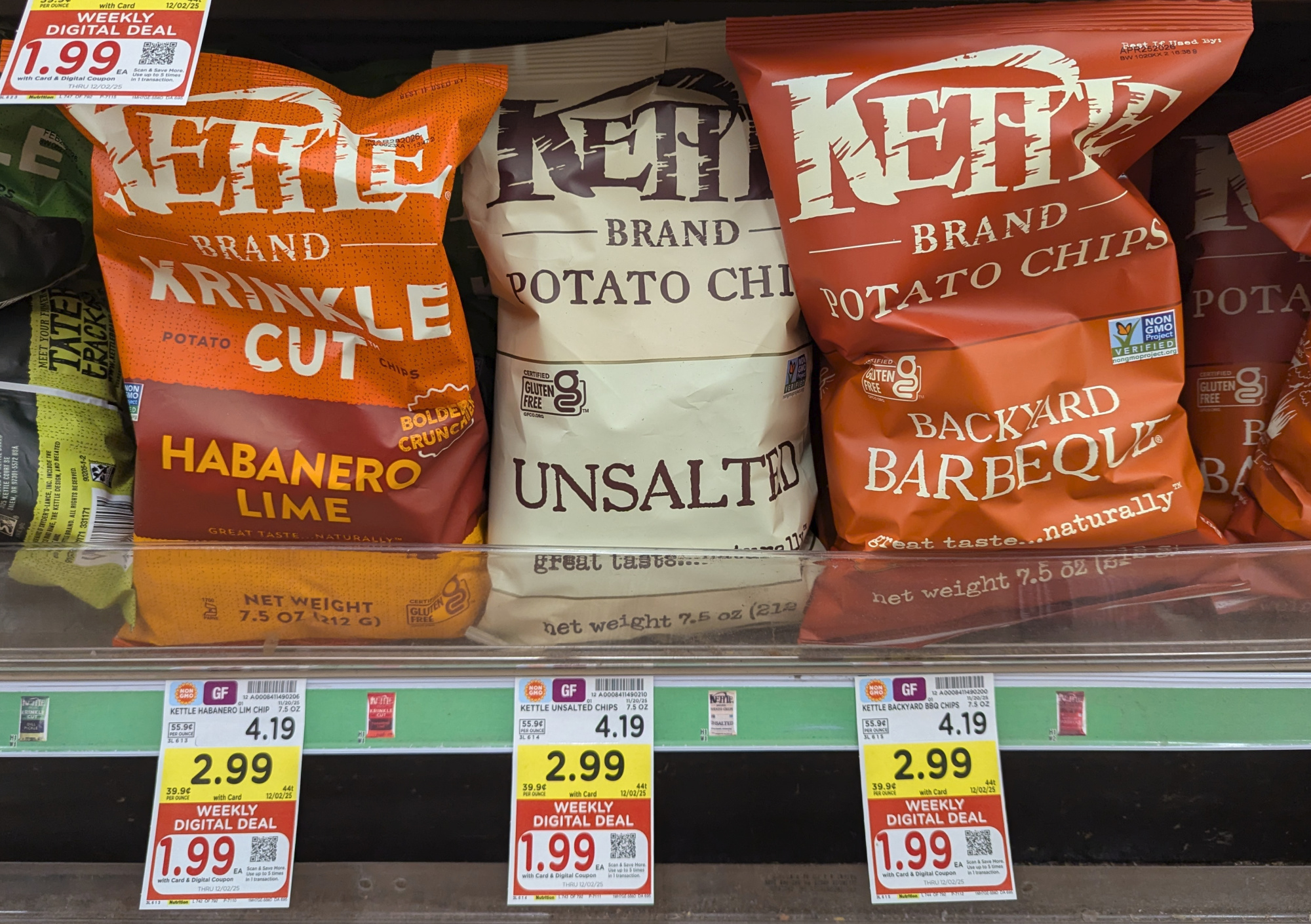 Get to Kroger and get Kettle Chips for just $1.99 per bag with the sale and digital coupon. Get up to FIVE of your favorite flavors at a nice price.