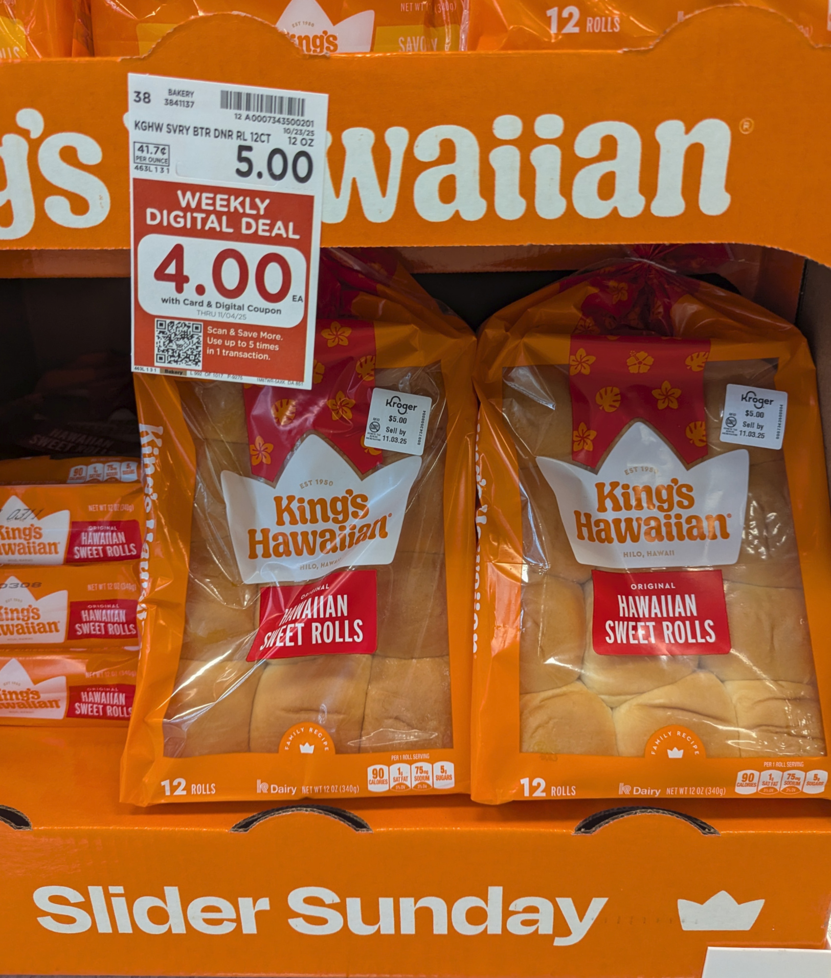 –$1/1 King’s Hawaiian Rolls, 12 ct, Kroger Super Saver Digital Coupon (use up to 5 times in a single transaction)