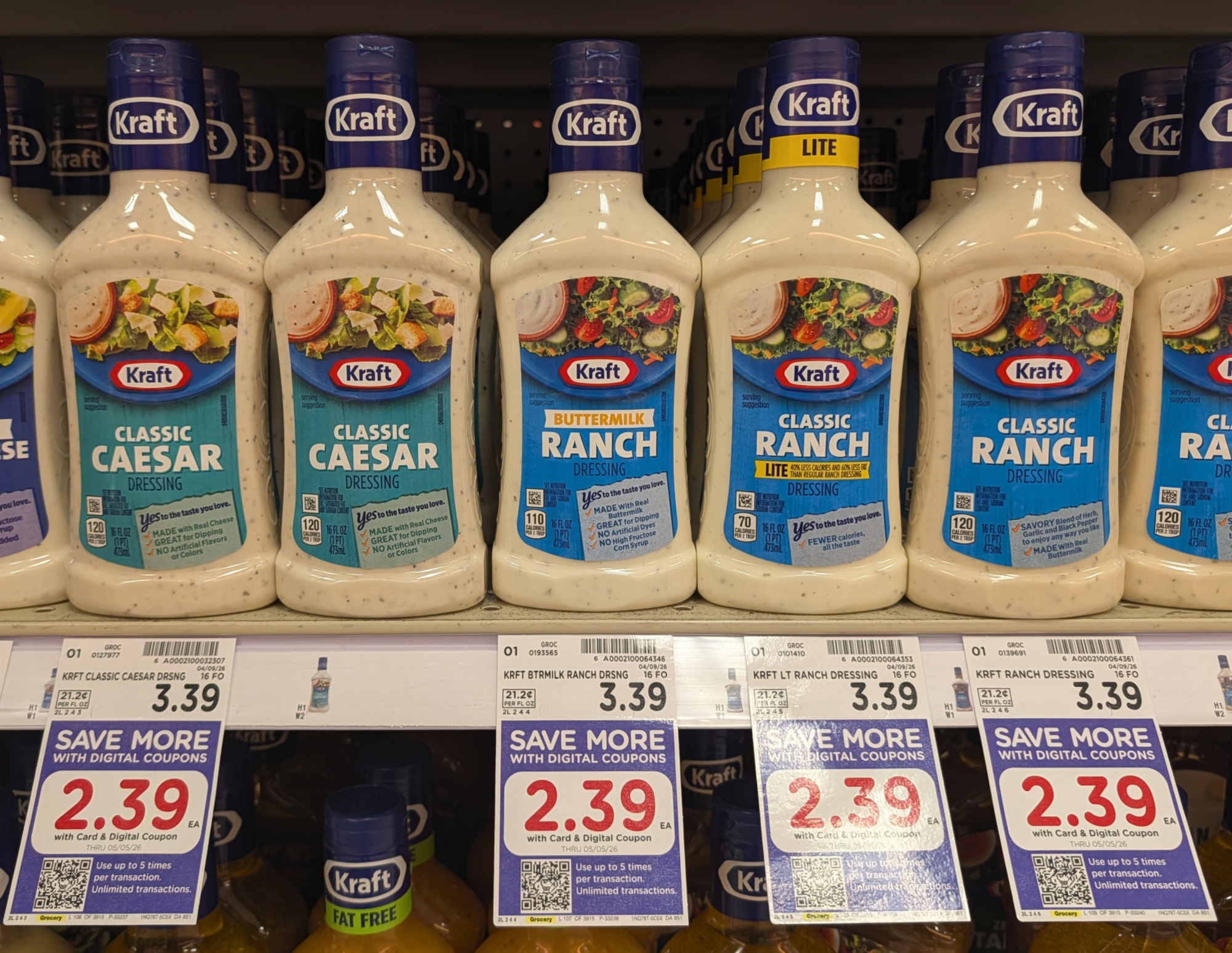 $1/1 Kraft Salad Dressing, 14 to 16 oz, Kroger Super Saver Digital Coupon (use up to 5 times in a single transaction)