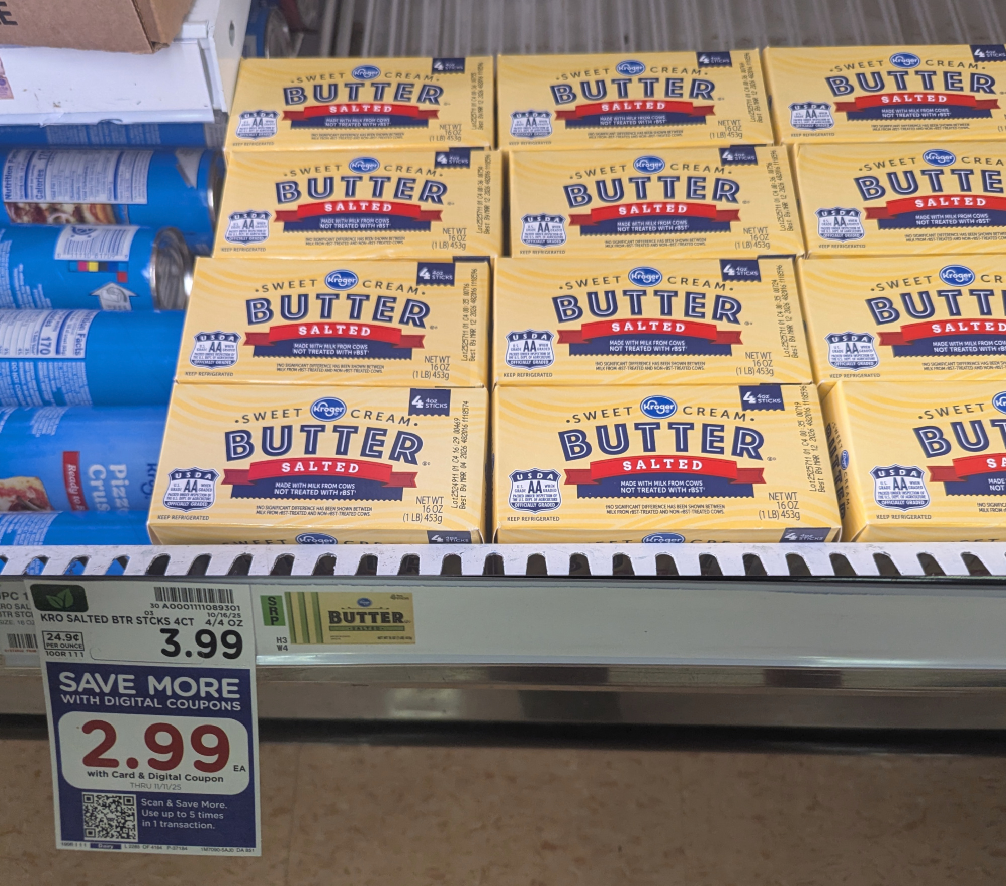 –$1/1 Kroger Butter, 16 oz, Kroger Super Saver Digital Coupon (use up to 5 times in a single transaction)