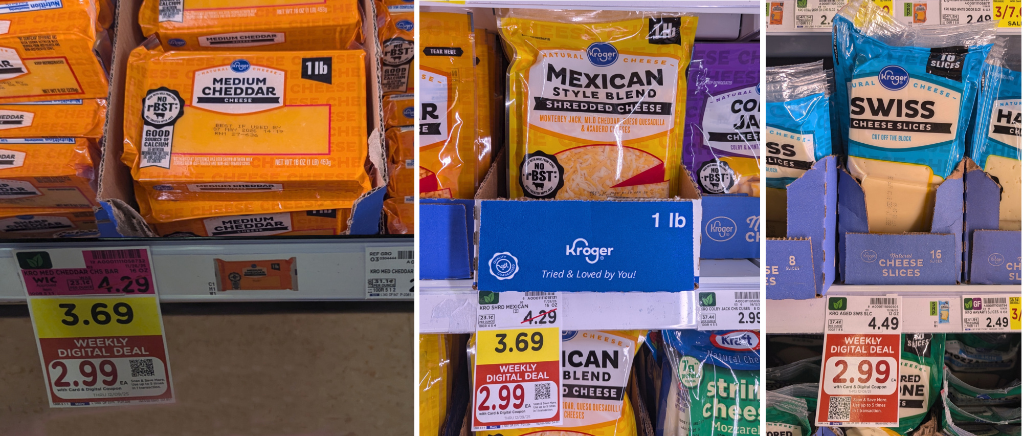Kroger Cheese, 12 to 16 oz, $3.69 (reg $4.29 – $4.49) – through 12/9