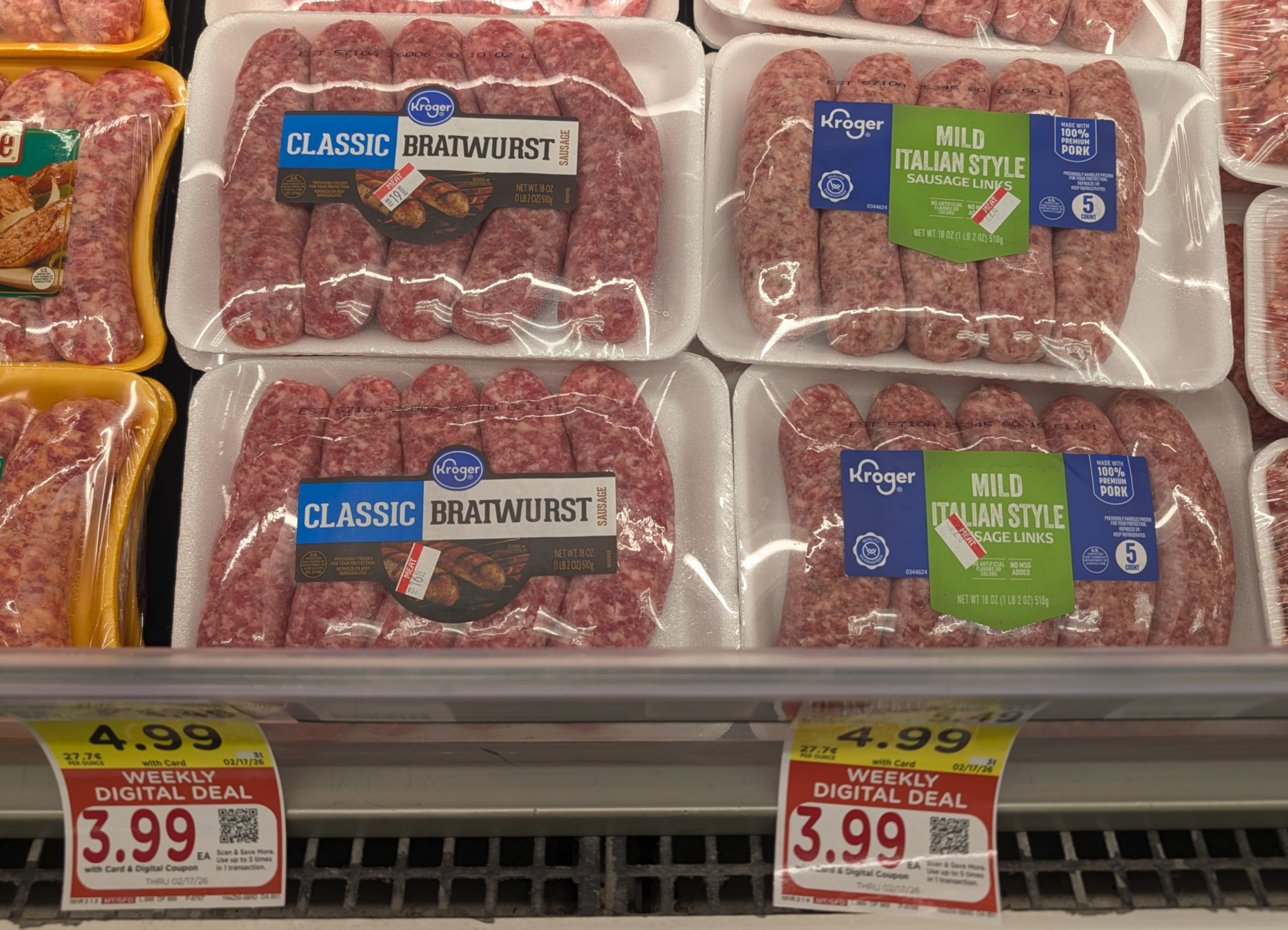 Look for a super deal on Kroger Fresh Dinner Sausage. With the sale and digital coupon you pay just $3.99 per pack!