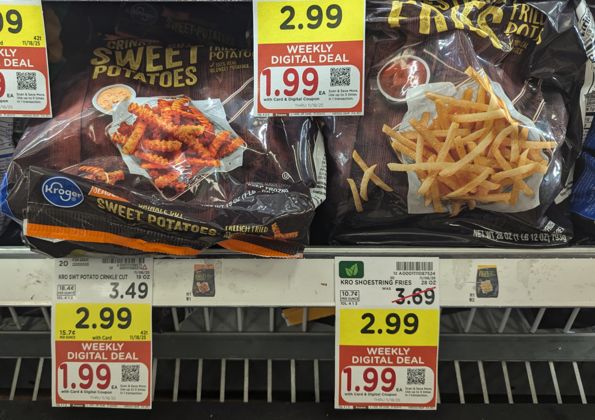 Clip your coupon and grab the bags of Kroger Frozen Potatoes for just $1.99 each. These are normally $3.69, so it is a perfect time to grab a bag (or five) for your favorite meals/recipes.