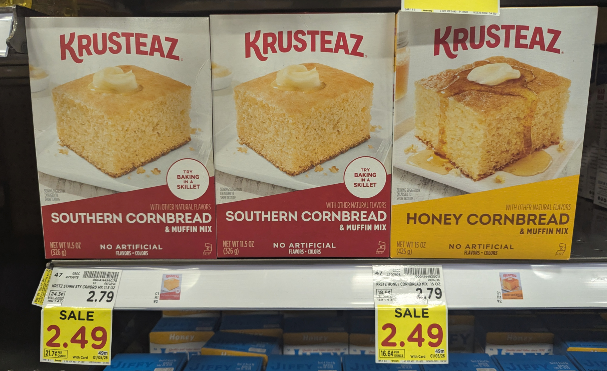 Krusteaz Cornbread Mix, 11.5 to 15 oz, $2.49 (reg $2.79) – through 1/14/25