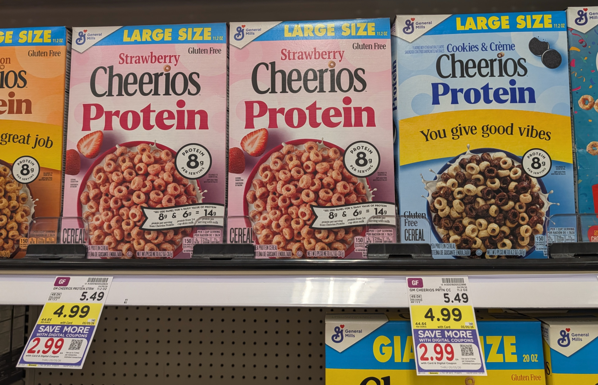 –$2/1 Cheerios Protein Cereal (11.2 oz), Kroger Super Saver Digital Coupon (use up to 5 times in a single transaction)