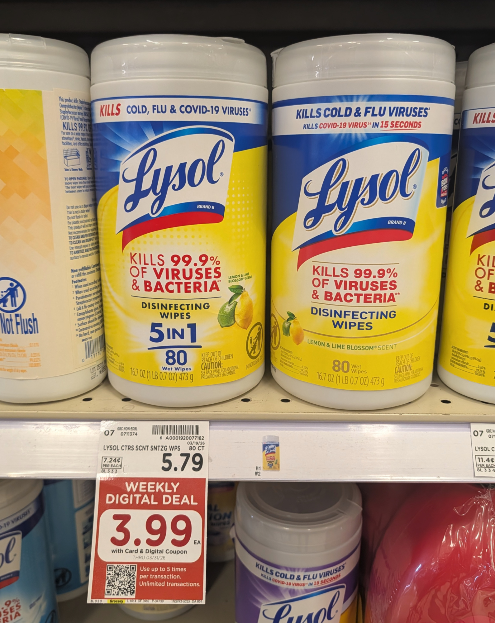 You can get a deal on Lysol Wipes right now at Kroger. Use the digital coupon to get the canisters for just $3.99 each when you shop.