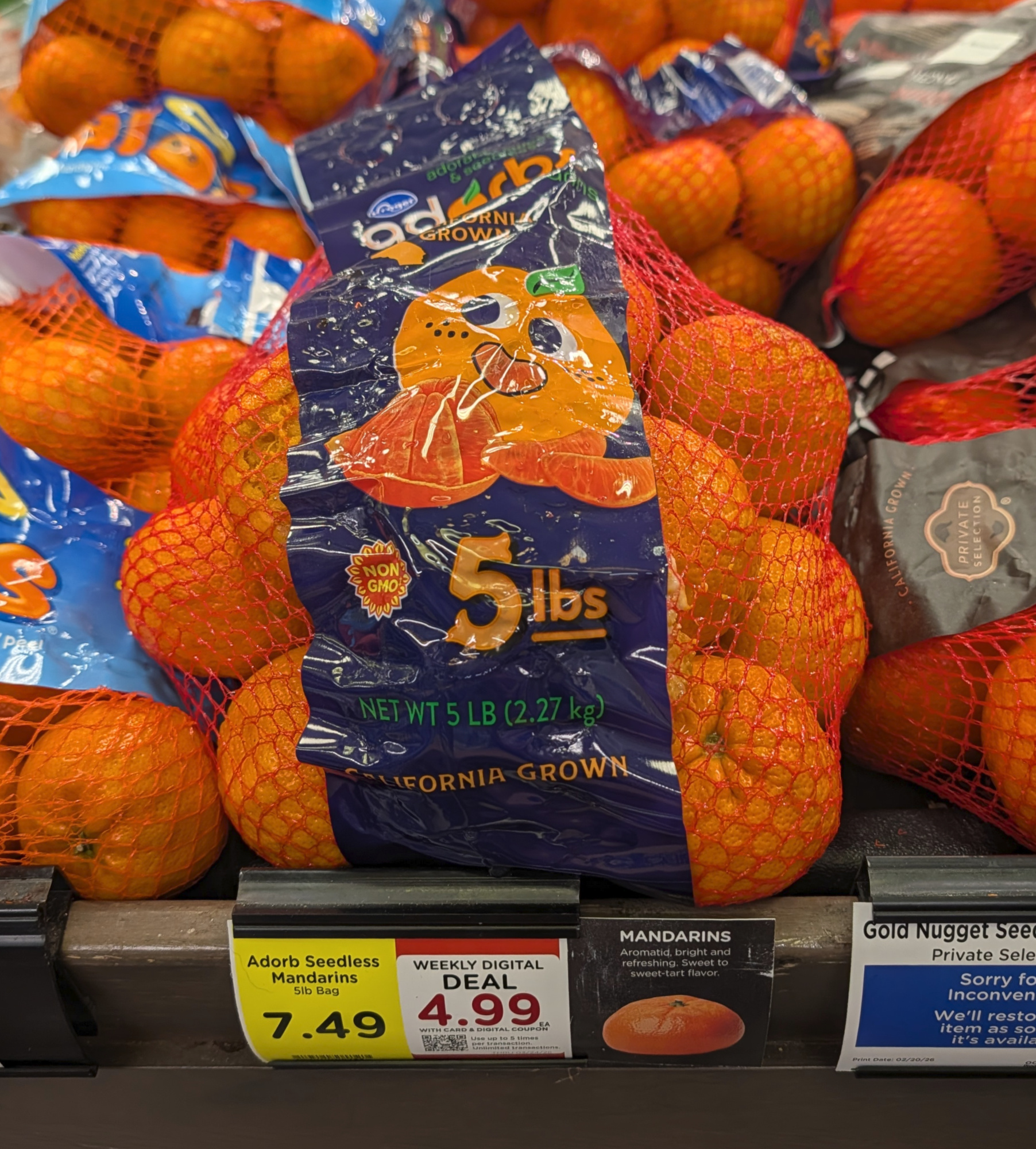 –$2.50/1 Kroger Adorbs Seedless Mandarins, 5-lb bag, or Kroger Navel Oranges, 8-lb bag, Kroger Super Saver Digital Coupon (use up to 5 times in a single transaction)