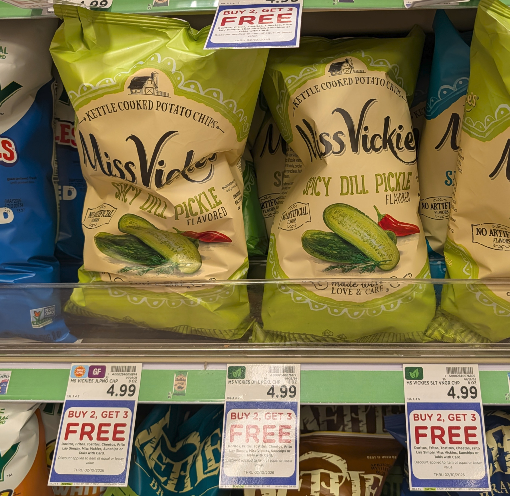 Head over to Kroger for a deal on Miss Vickie’s Kettle Cooked Potato Chips. Right now the bags are on sale with a cash back offer to pair up. After discounts, you pay just $1.25 per bag.