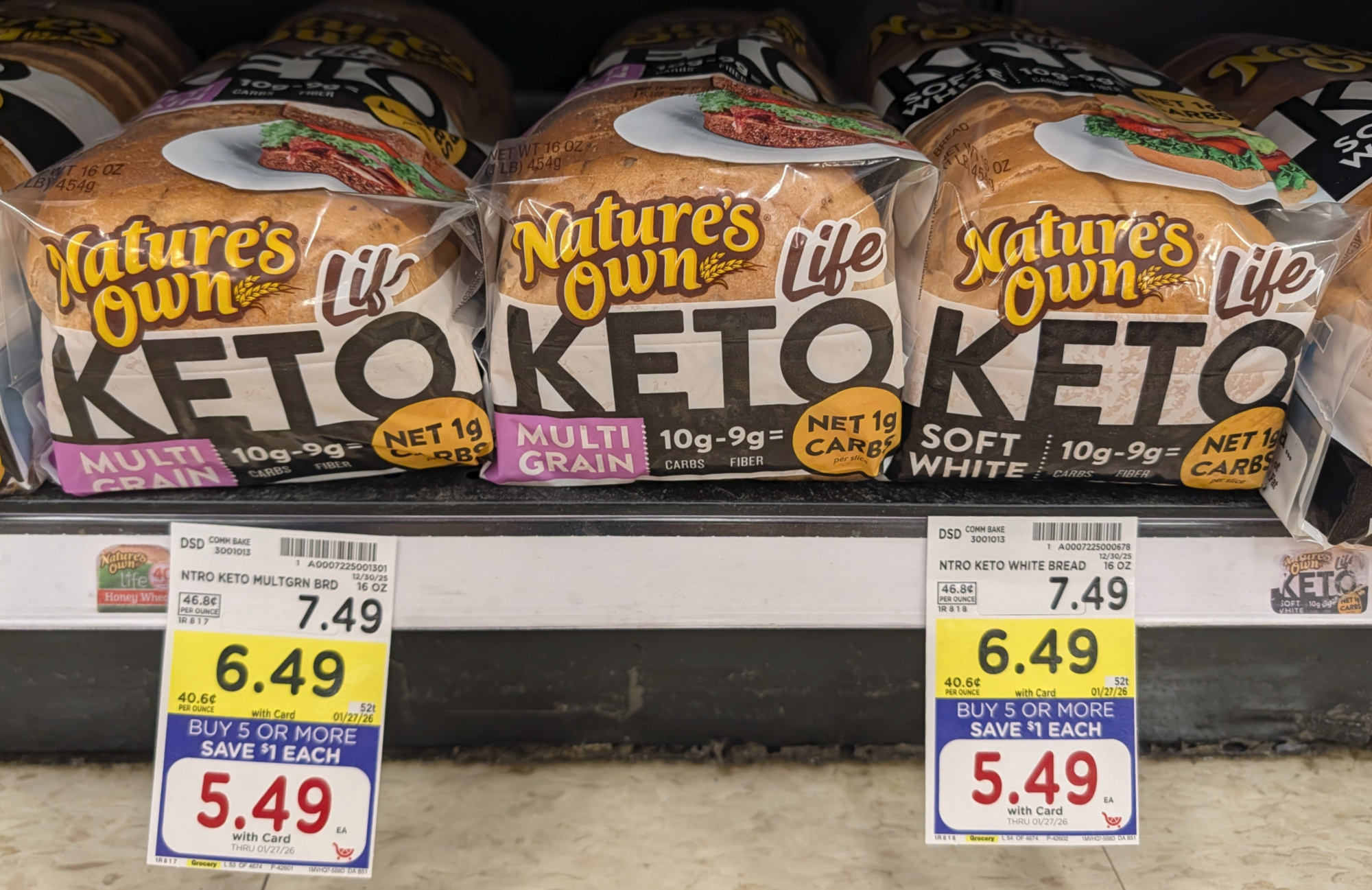 Nature’s Own Keto Bread, 16 oz, or Buns, 8 ct, $5.49 (reg $7.49) – through 1/27