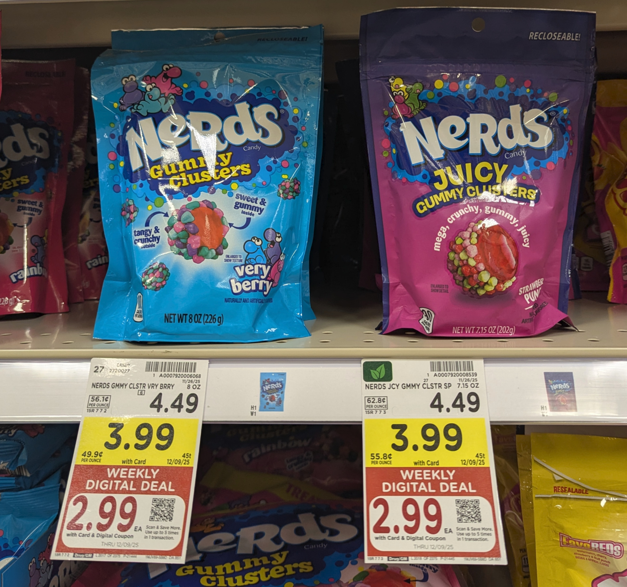 Load your Nerds Gummy Clusters coupon for a nice deal this week at Kroger. After discounts you pay just $2.99 per bag the next time you shop!