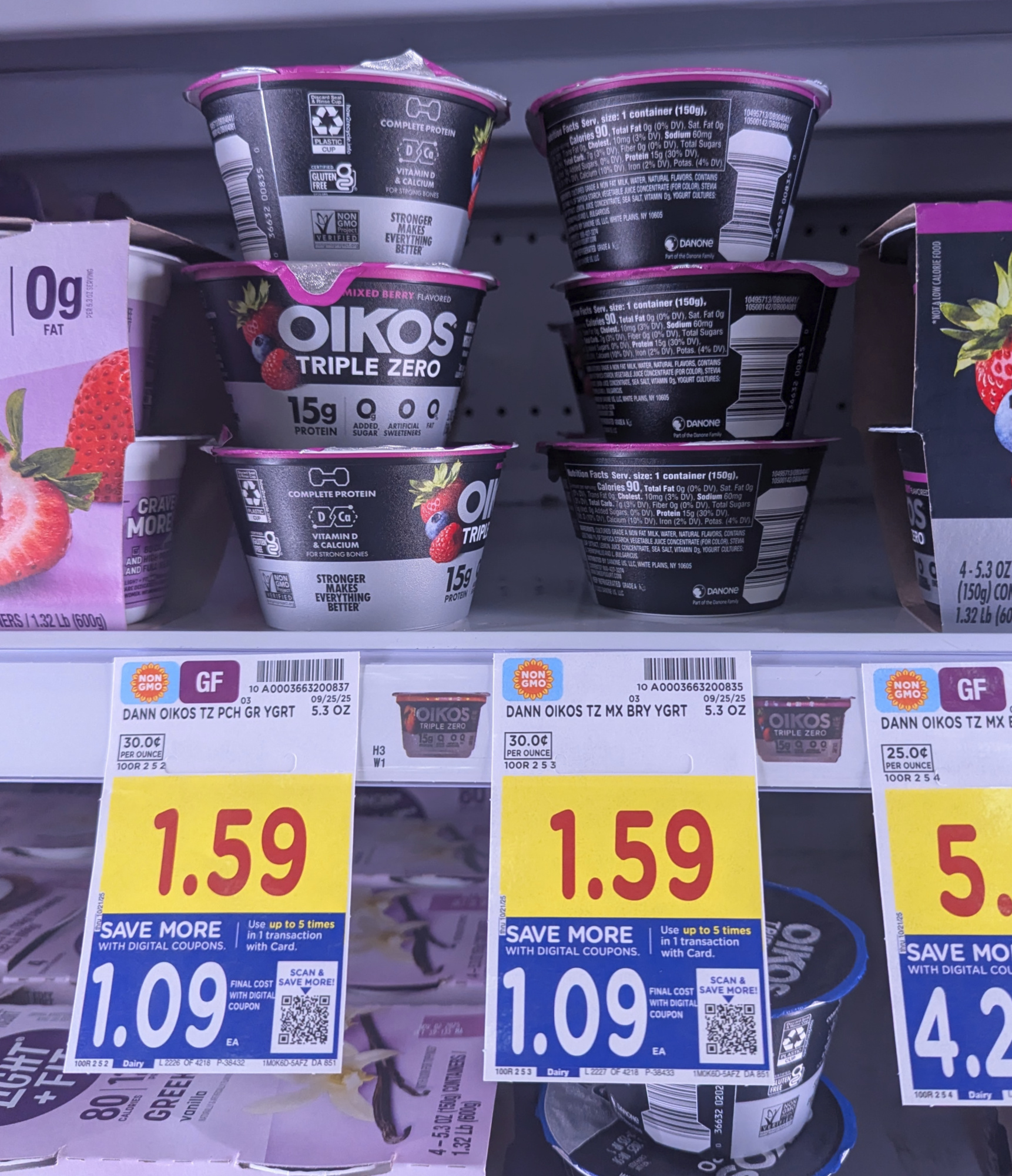 –$0.50/1 Oikos Triple Zero Greek Single Serve (5.3 oz), Kroger Super Saver Digital Coupon (use up to 5 times in a single transaction)