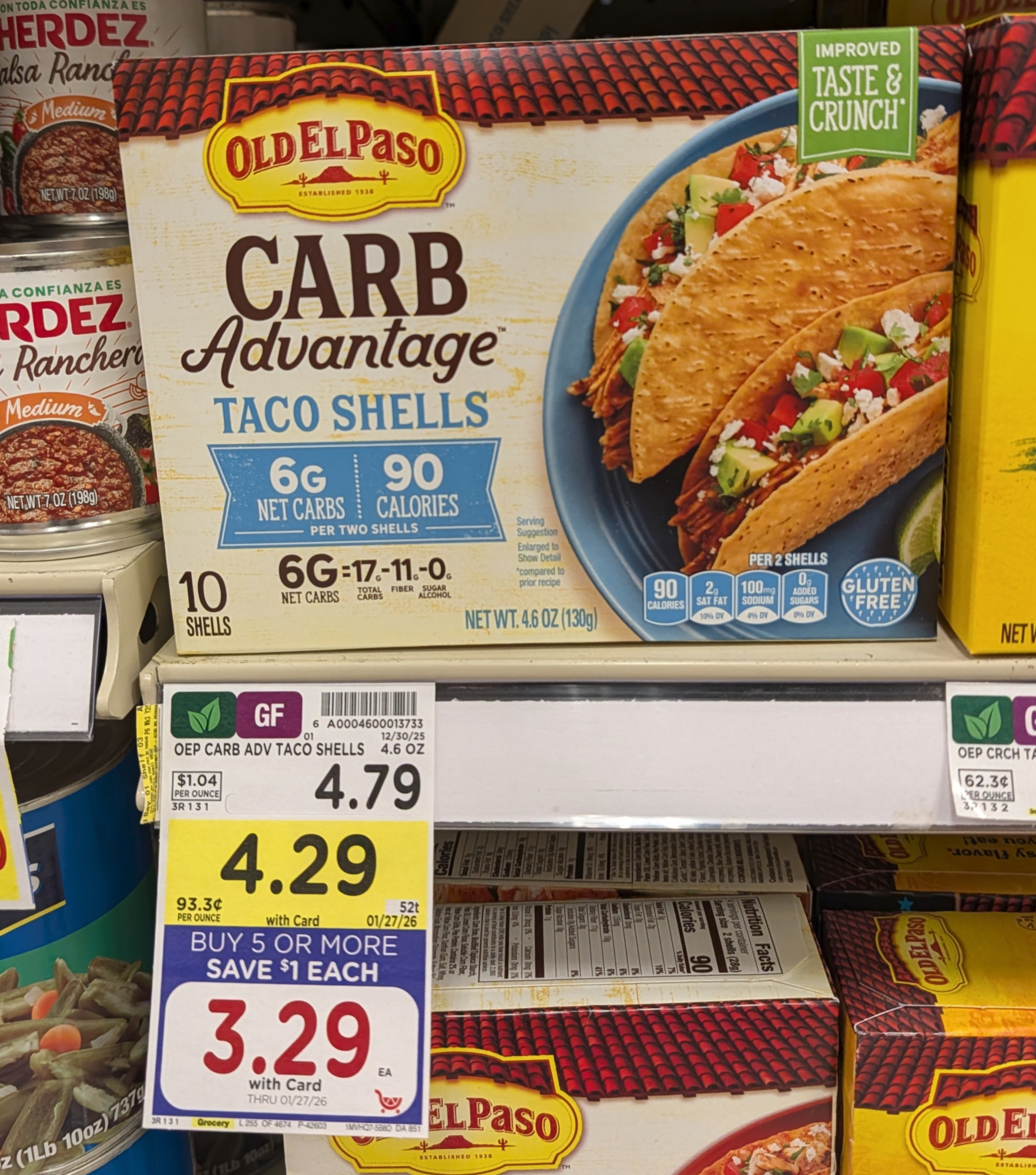 Old El Paso Carb Advantage Taco Shells, 10 ct, $3.29 (reg $4.79) – through 1/27