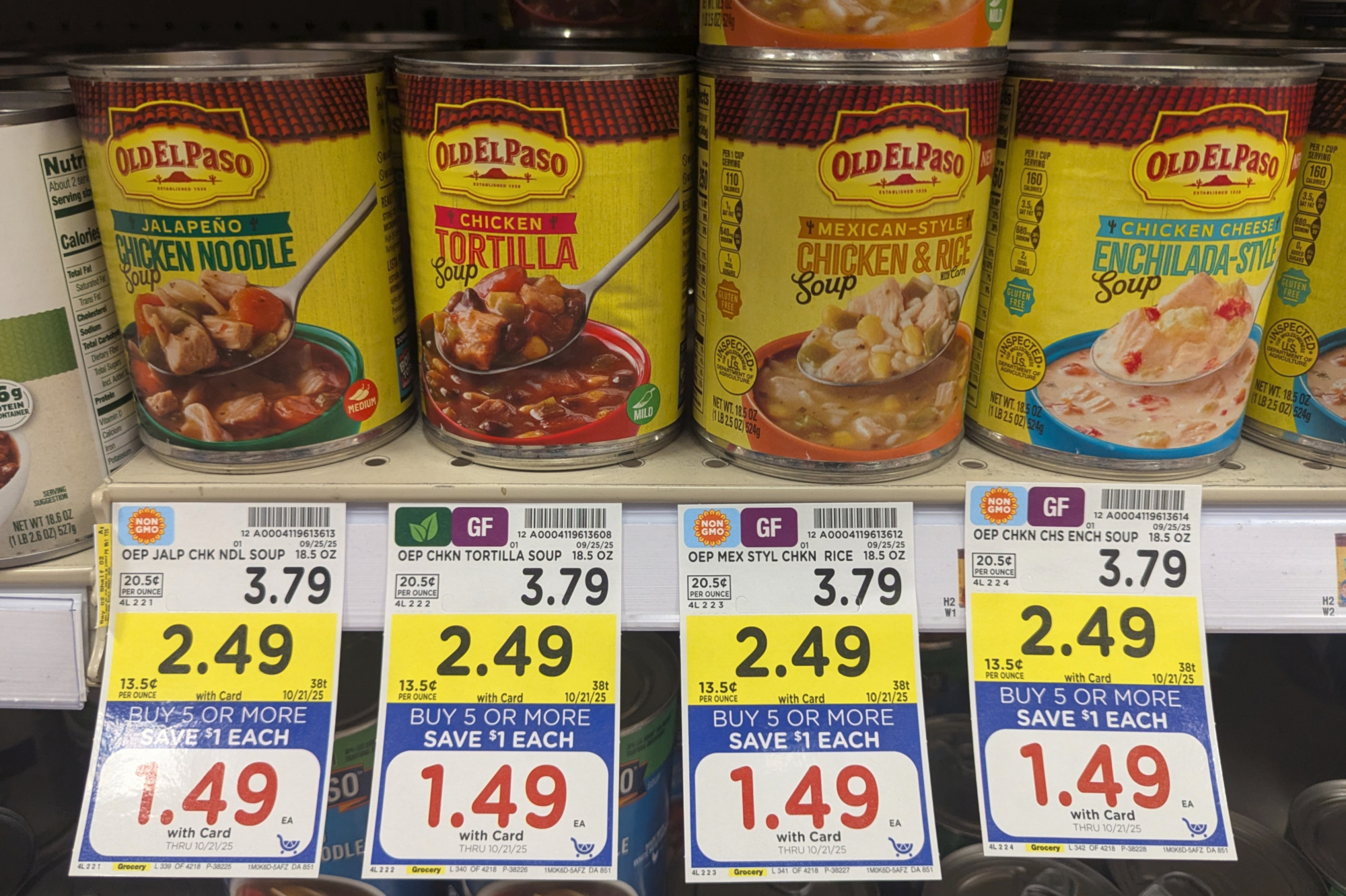 Grab a nice deal on Old El Paso Soup at Kroger. After discounts you’ll get the cans for as little as $1.24 each.
