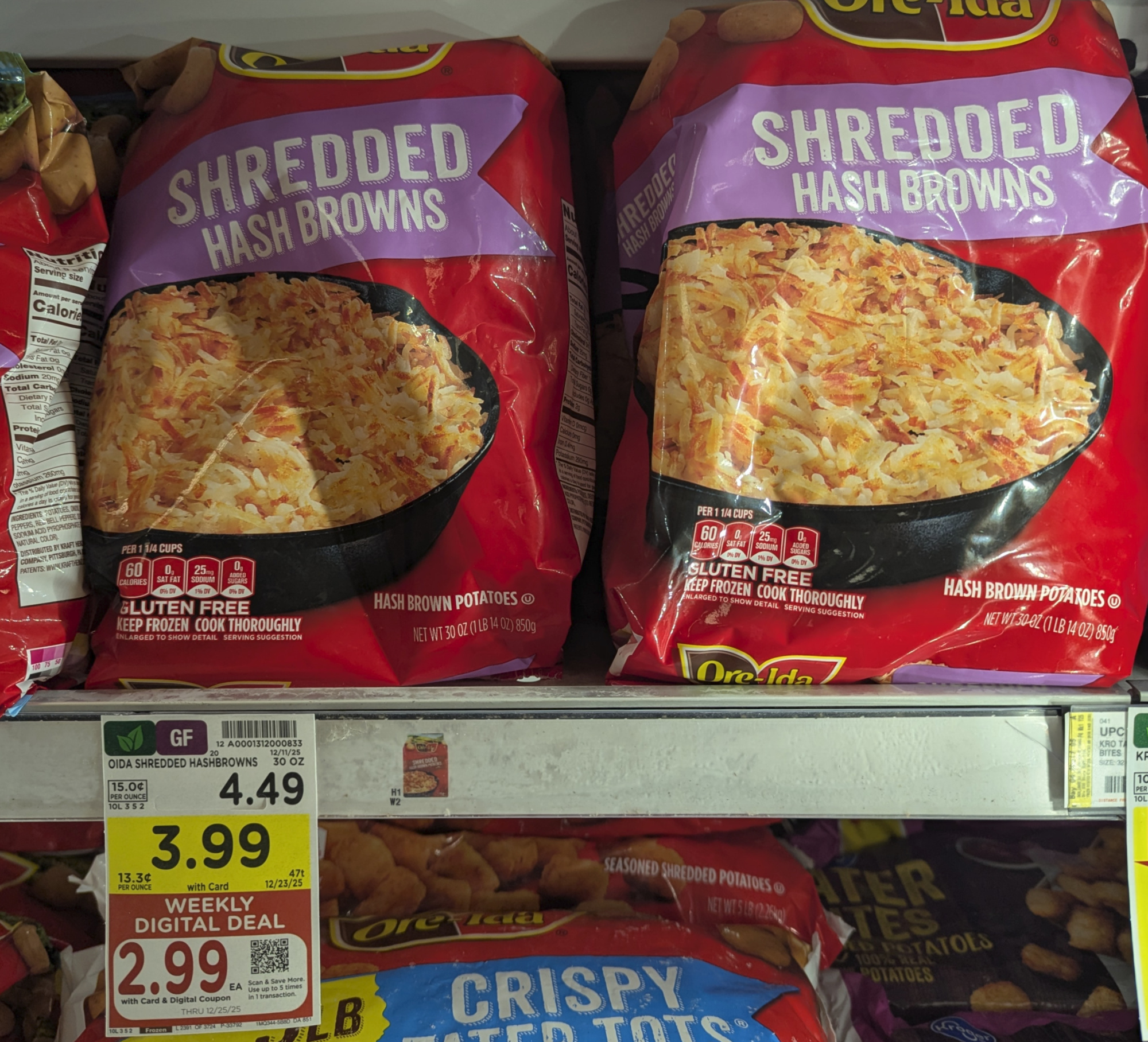 Pick up all your favorite Ore-Ida Hash Browns or Tater Tots at a super discount this week Kroger. With the sale and coupon you’ll get the bags for just $2.99 each!