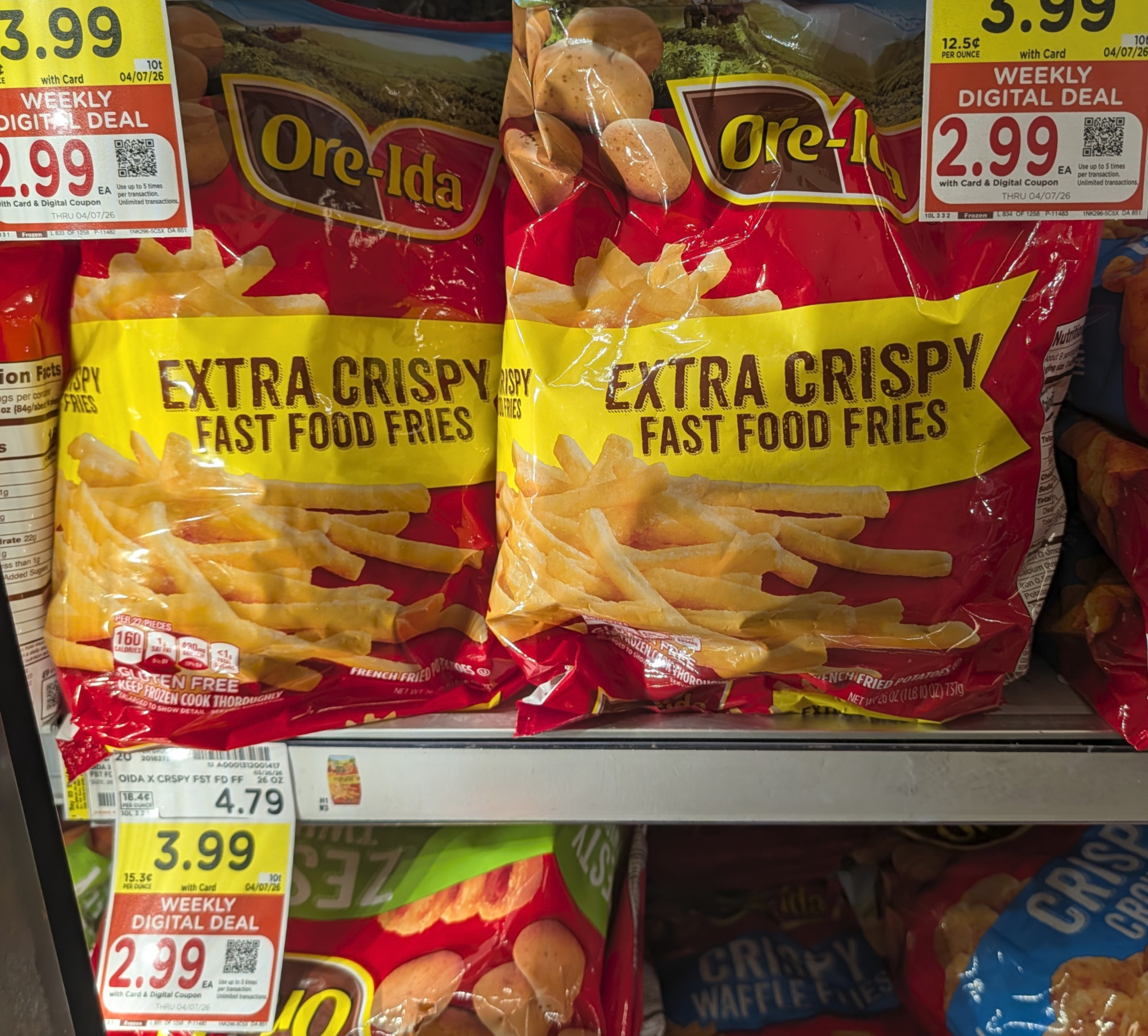 –$1/1 Ore-Ida Frozen Potatoes, 19 to 32 oz, Kroger Super Saver Digital Coupon (use up to 5 times in a single transaction)
