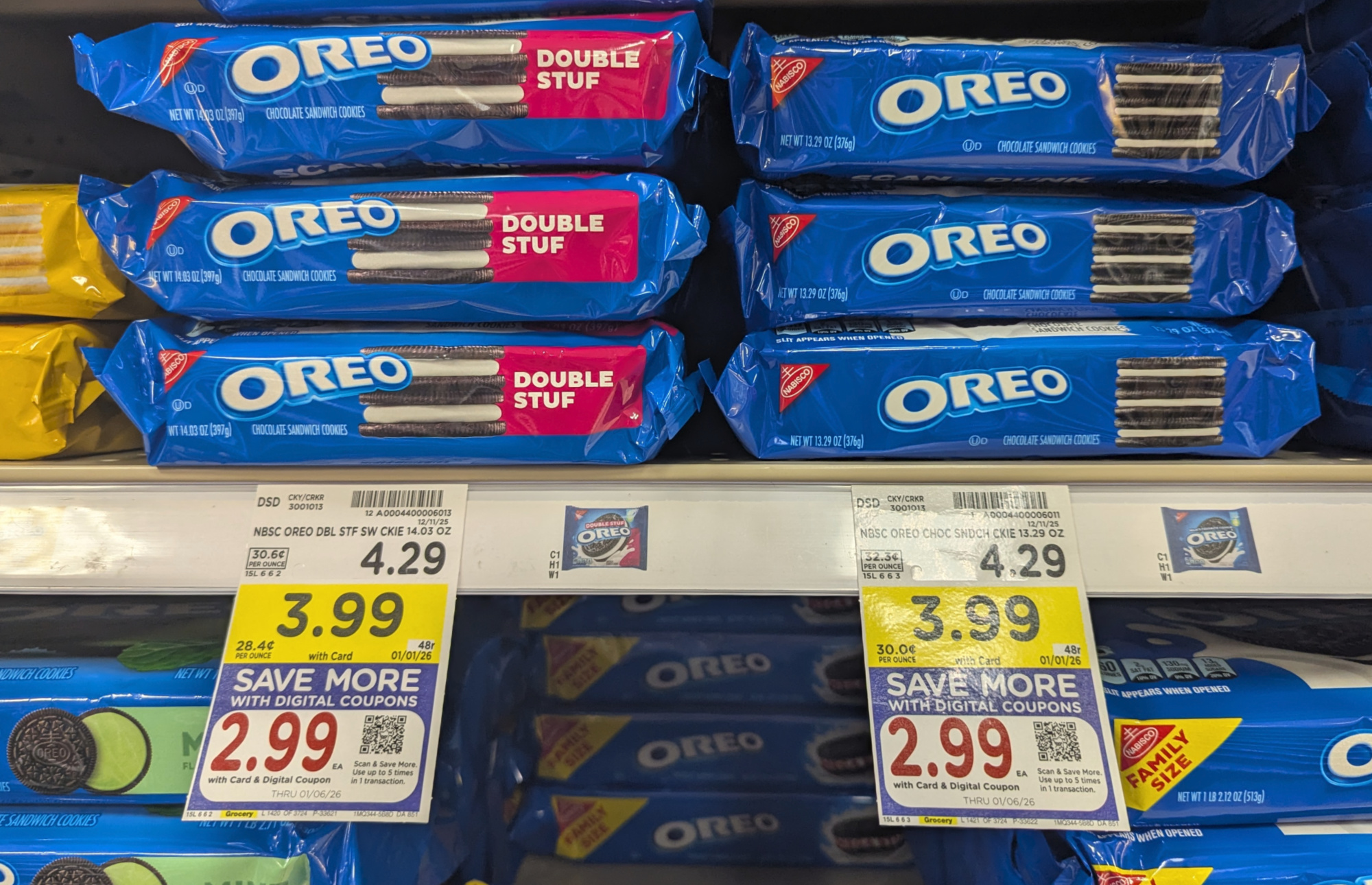 Pick up Oreo Cookies as low as $2.99 right now at Kroger. Combine the sale and coupon for your deal. Get up to FIVE at a discount with the digital coupon.