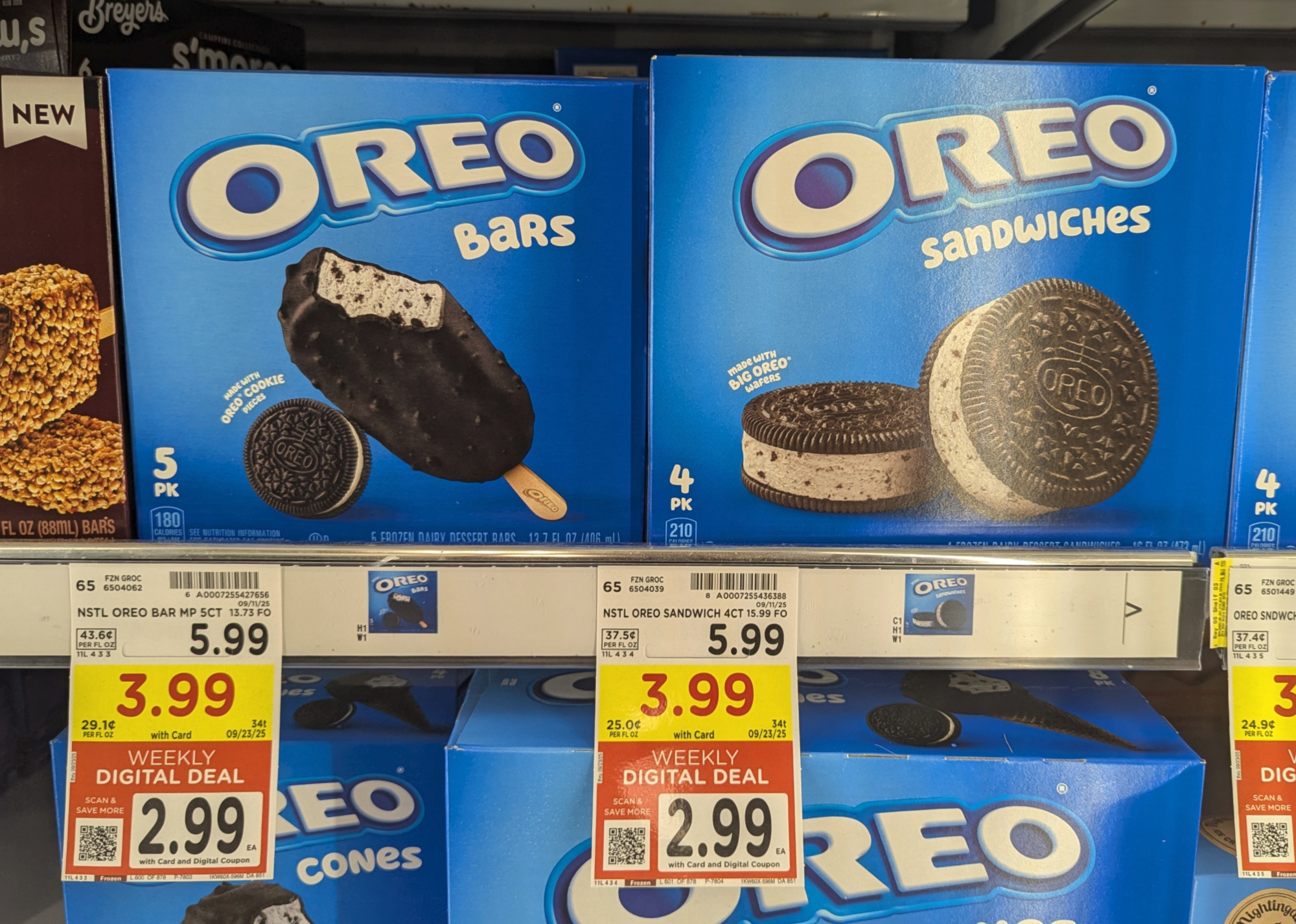 Oreo Frozen Dairy Desserts, 4 to 5 ct, $3.99 (reg $5.99) – through 9/23