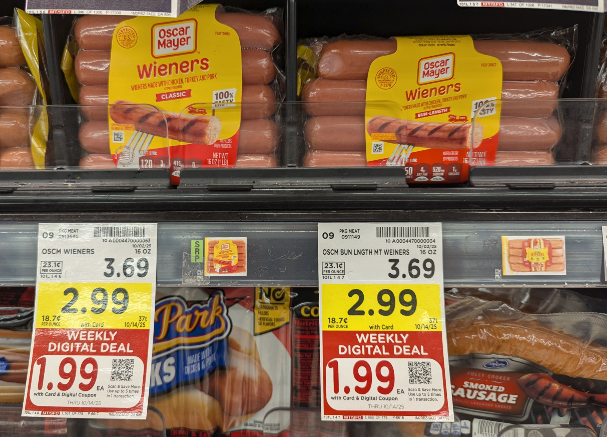 –$1/1 Oscar Mayer Meat Wieners, 14 to 16 oz, Kroger Super Saver Digital Coupon (use up to 5 times in a single transaction)