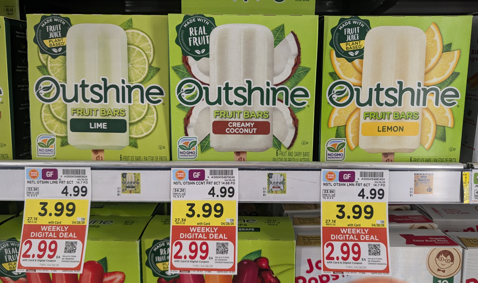 –$1/1 Outshine Fruit Bars 3 – 6 ct, Kroger Super Saver Digital Coupon (use up to 5 times in a single transaction)
